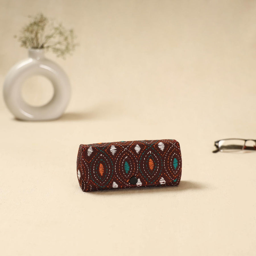 Brown - Handcrafted Bengal Kantha Work Spectacle Case 14