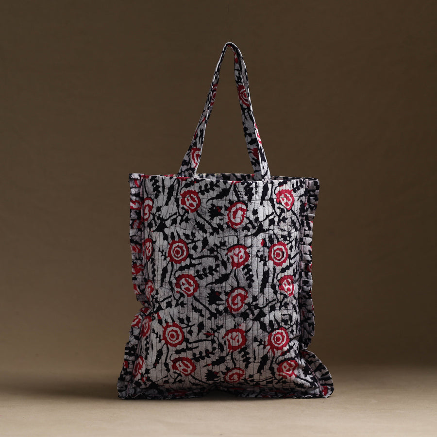 This black handcrafted cotton frill jhola bag seamlessly blends tradition with modern style. Made from eco-friendly materials, it’s spacious enough to carry your daily essentials while adding a touch of artisanal charm to your outfit.