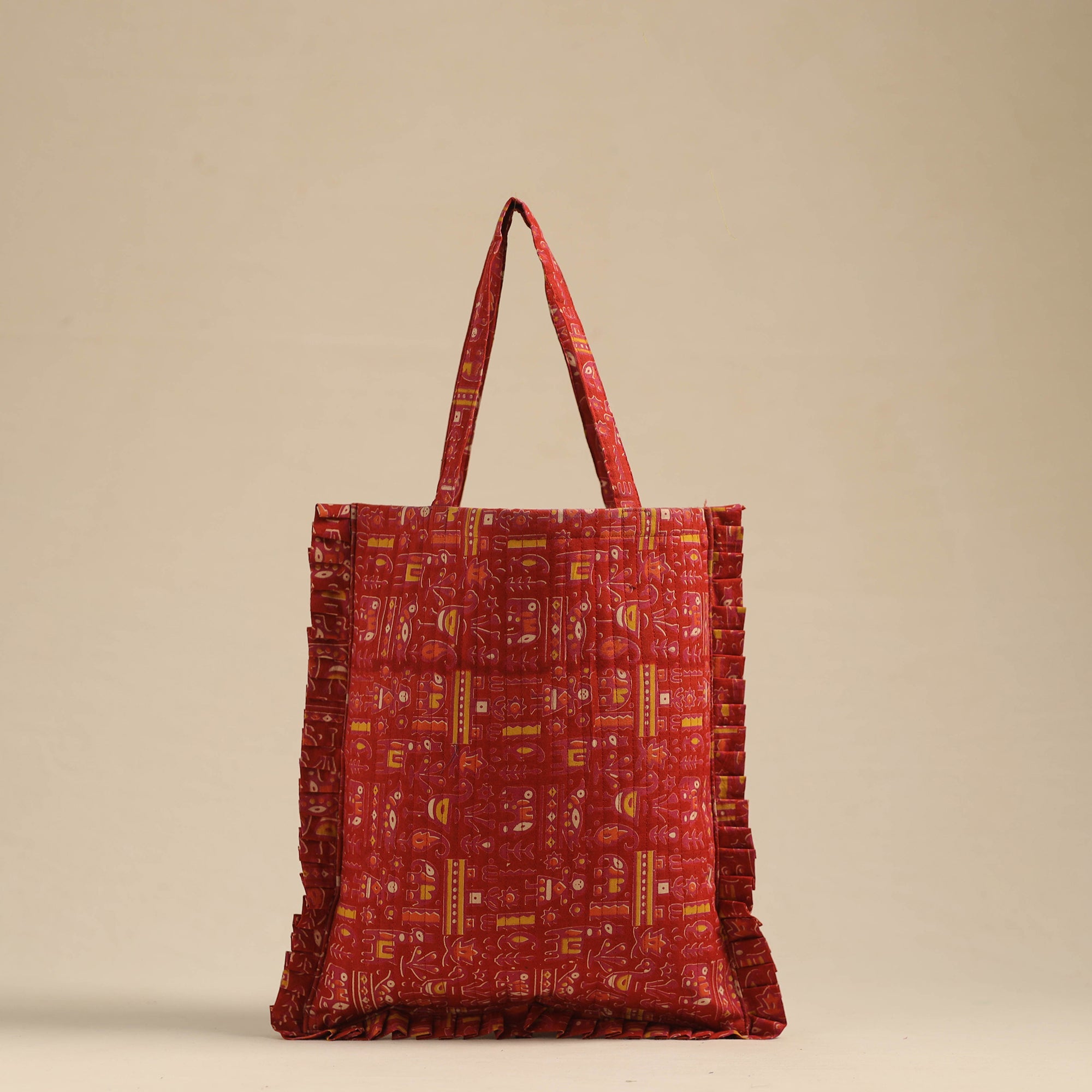 This red handcrafted cotton frill jhola bag seamlessly blends tradition with modern style. Made from eco-friendly materials, it’s spacious enough to carry your daily essentials while adding a touch of artisanal charm to your outfit.