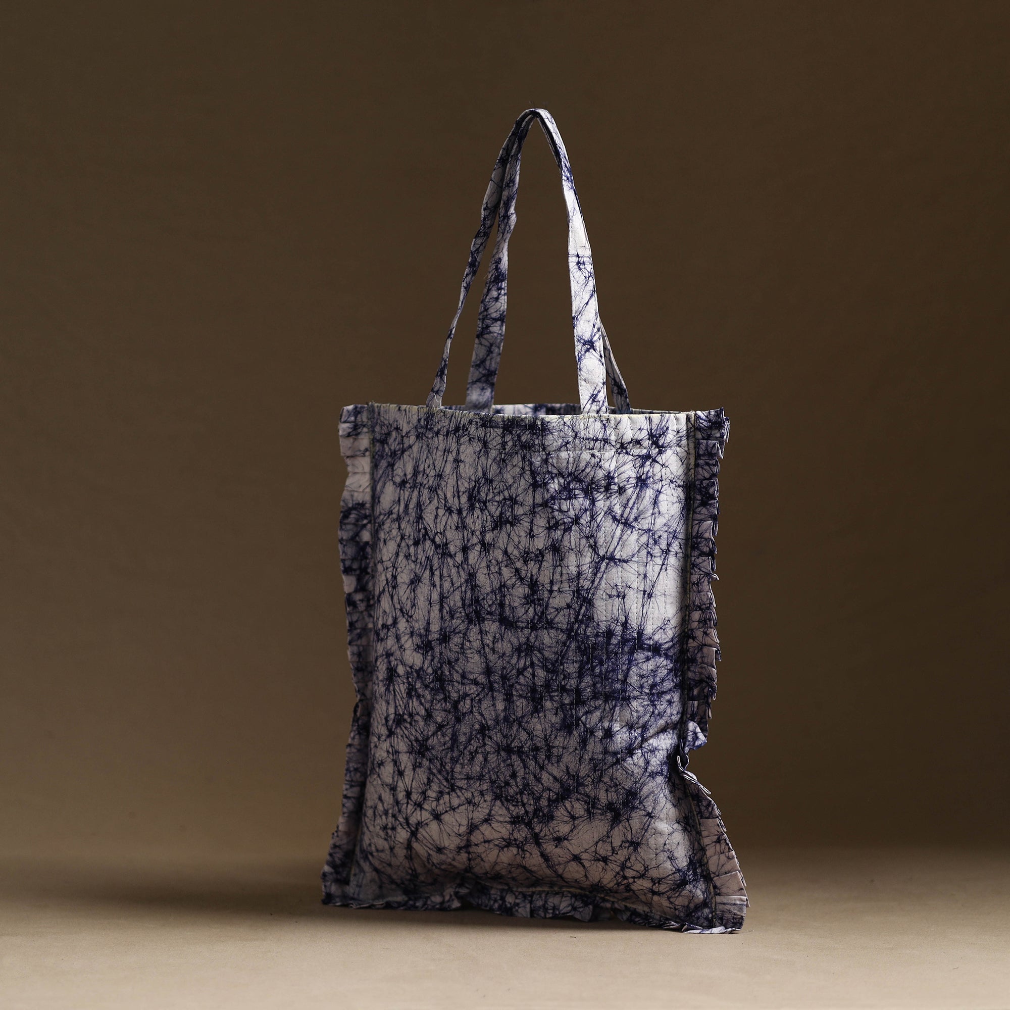 This blue handcrafted cotton frill jhola bag seamlessly blends tradition with modern style. Made from eco-friendly materials, it’s spacious enough to carry your daily essentials while adding a touch of artisanal charm to your outfit.