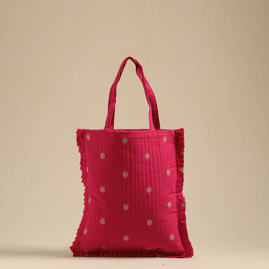 This pink handcrafted cotton frill jhola bag seamlessly blends tradition with modern style. Made from eco-friendly materials, it’s spacious enough to carry your daily essentials while adding a touch of artisanal charm to your outfit.