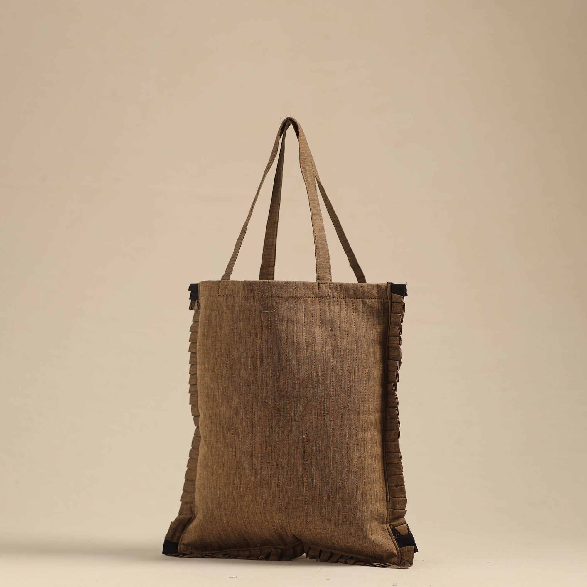 This brown handcrafted cotton frill jhola bag seamlessly blends tradition with modern style. Made from eco-friendly materials, it’s spacious enough to carry your daily essentials while adding a touch of artisanal charm to your outfit.