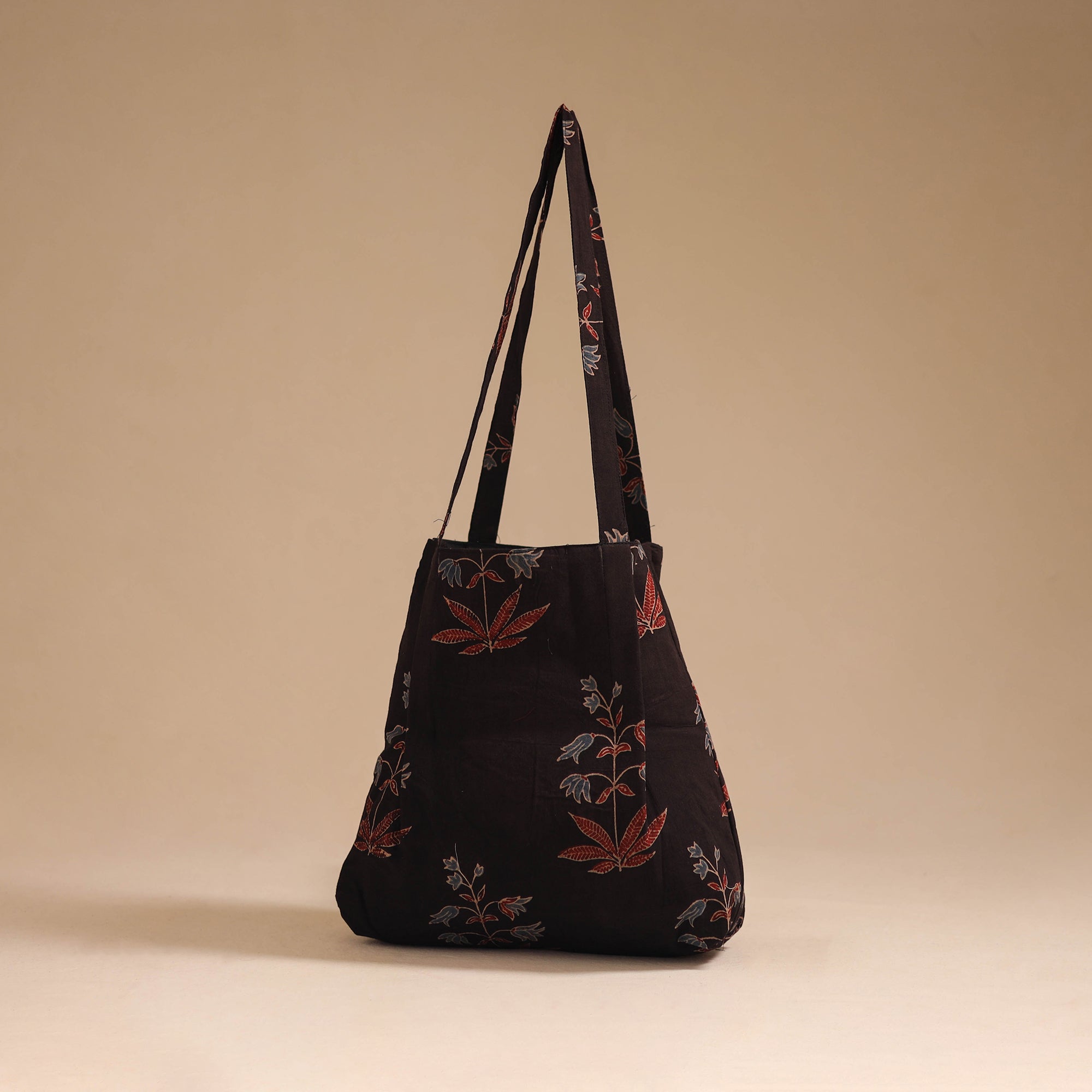 This handcrafted black cotton jhola bag beautifully blends tradition with everyday style. Made using authentic handmade Indian textiles, it features a spacious design with an inner pocket, perfect for keeping your daily essentials organized.