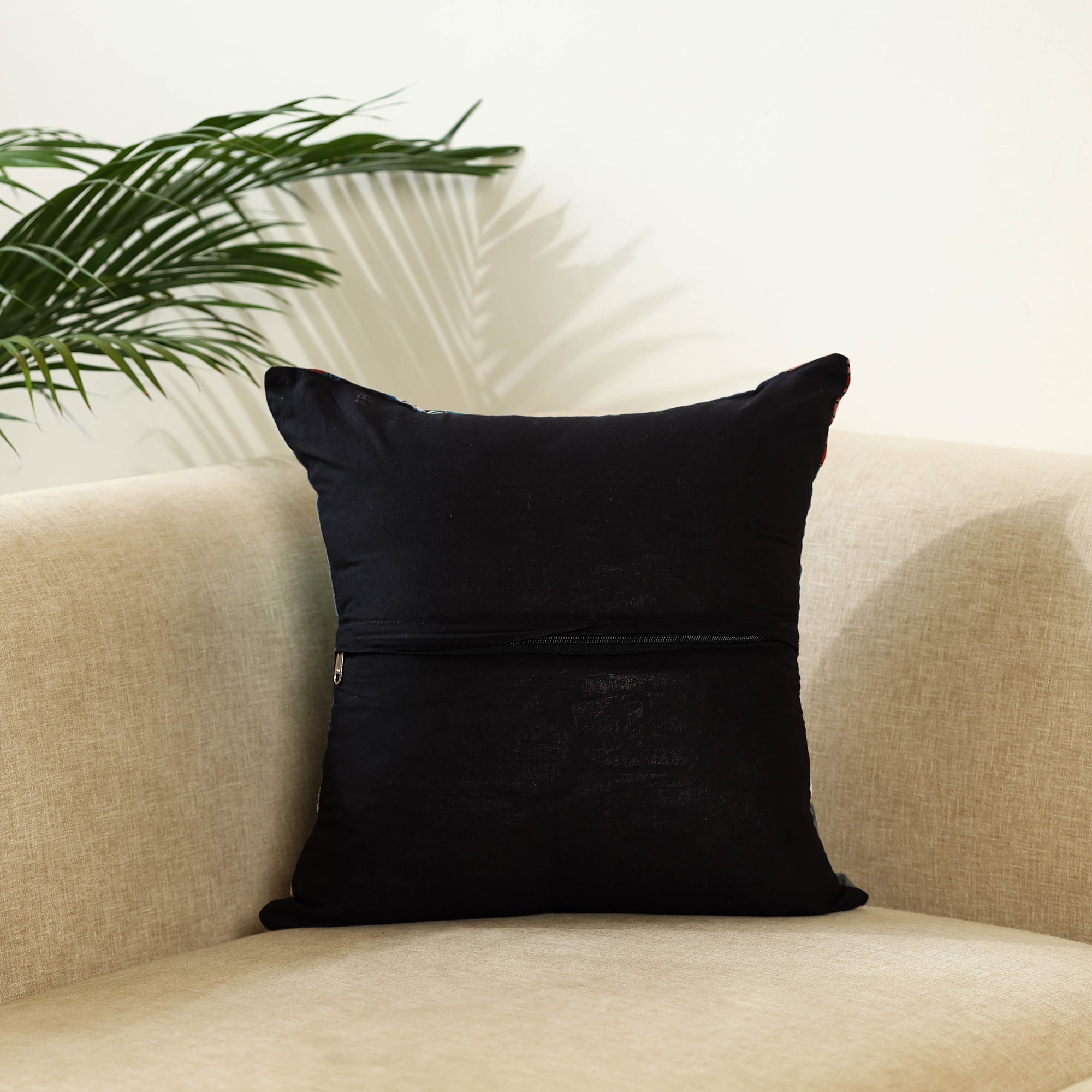 This multicolor patchwork cushion cover is crafted using cotton fabric and carefully stitched by skilled artisans. Each piece features a unique blend of colours and patterns, perfect for adding charm to sofas, beds, or reading corners.