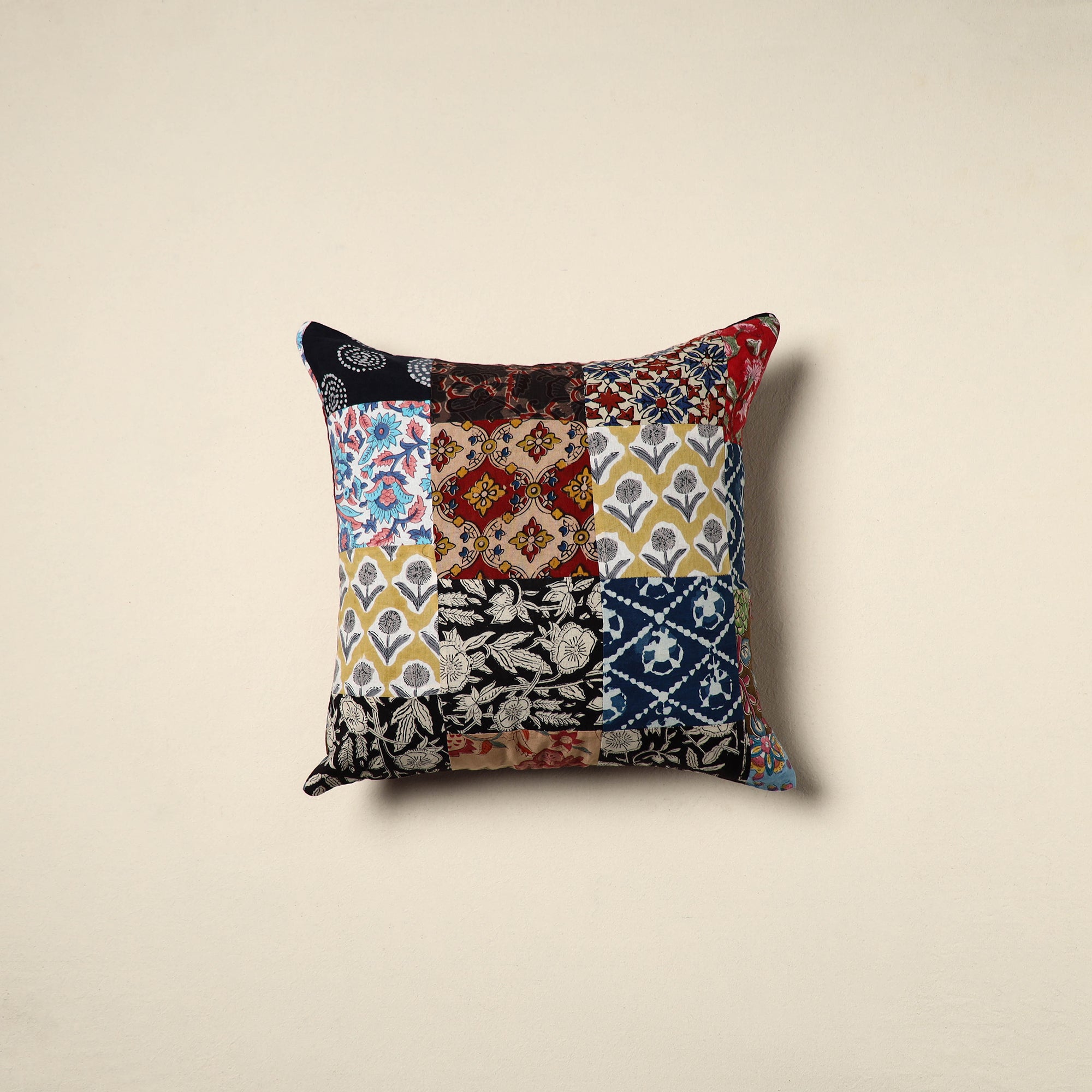 • Multicolor Handcrafted Cotton Patchwork Cushion Cover