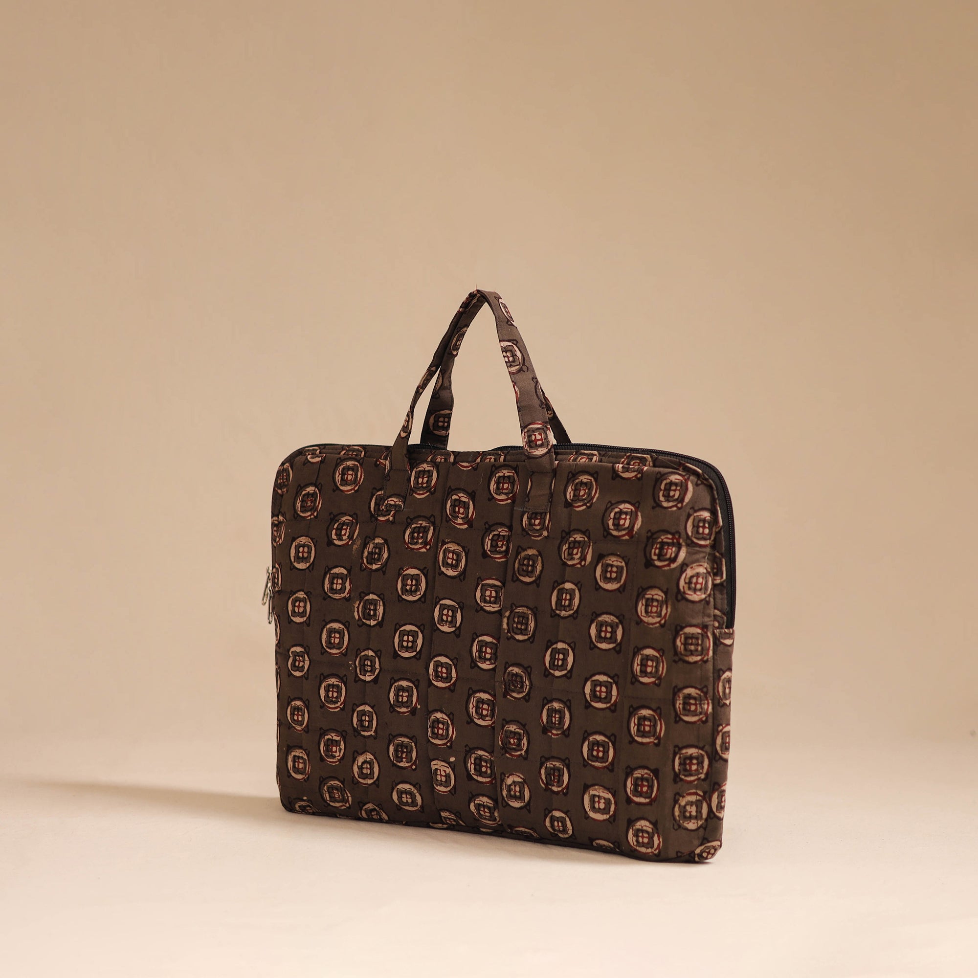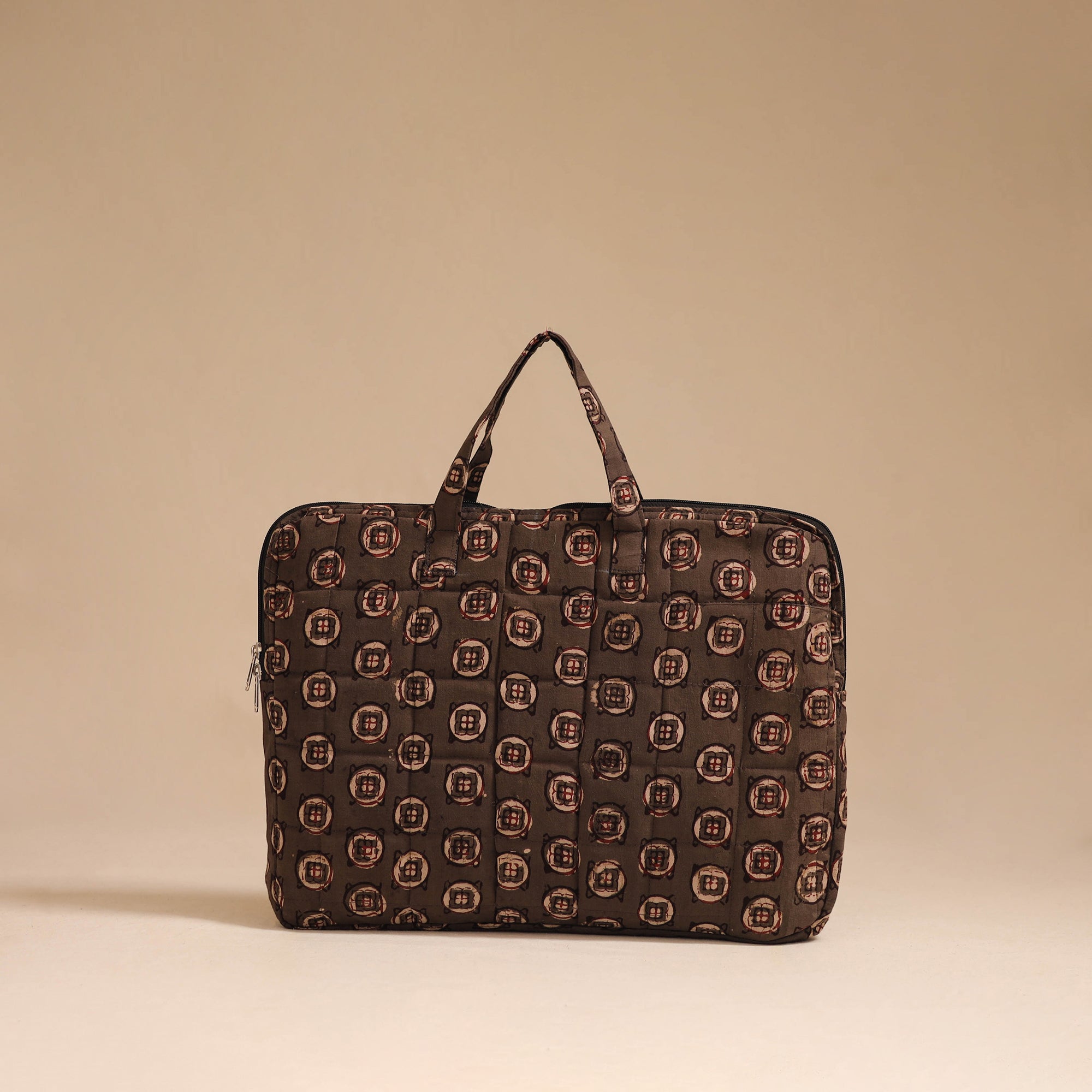 Brown - Handcrafted Cotton Quilted Laptop Bag 21