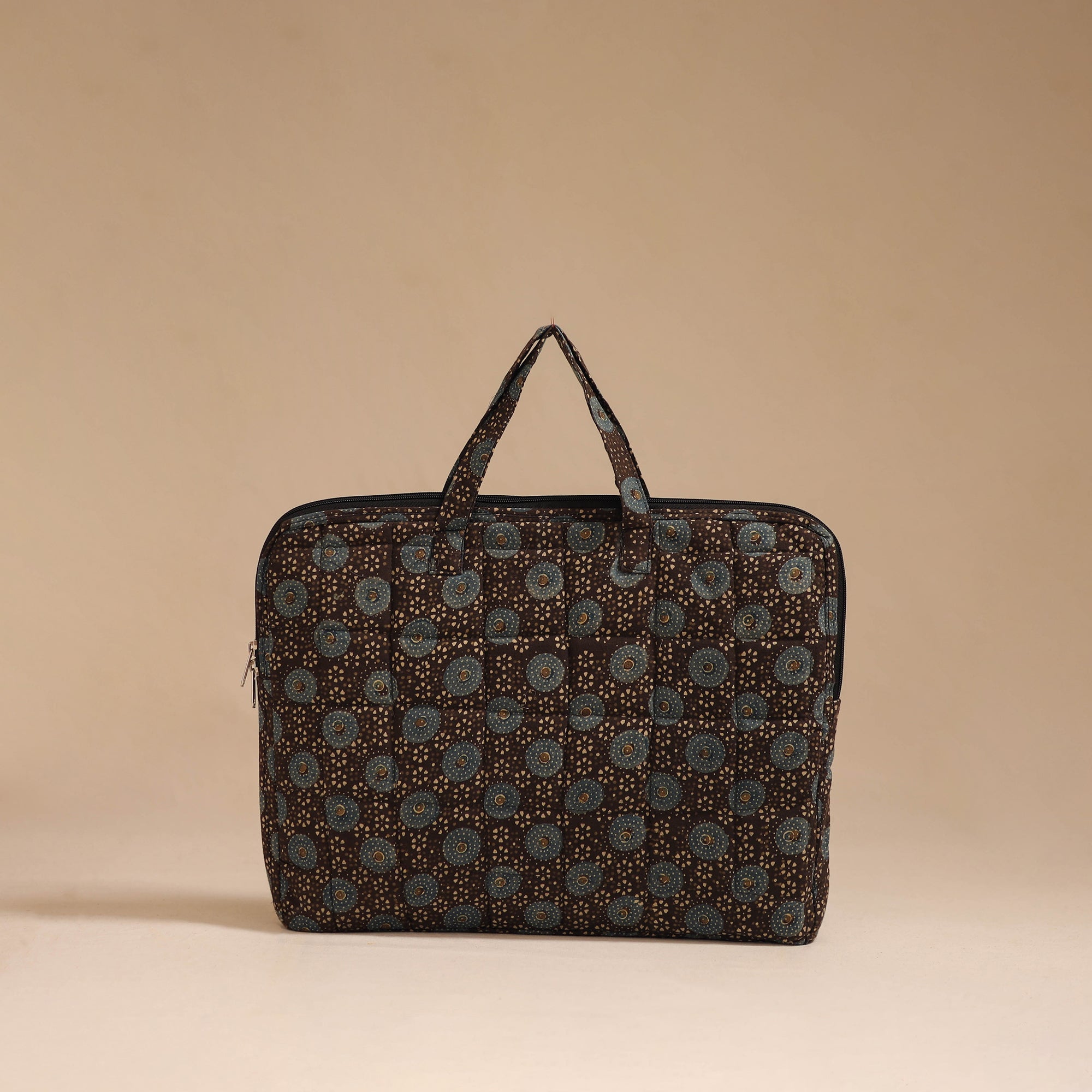Keep your laptop safe and stylish with this beautifully black quilted cotton laptop bag made by iTokri’s artisans. It features soft inner padding for extra protection, it offers gentle protection against bumps and scratches. The sturdy fabric handles ensure easy handling, while the spacious compartment fits most laptops with ease. A front zipper pocket adds convenience for storing daily essentials during travel or work.