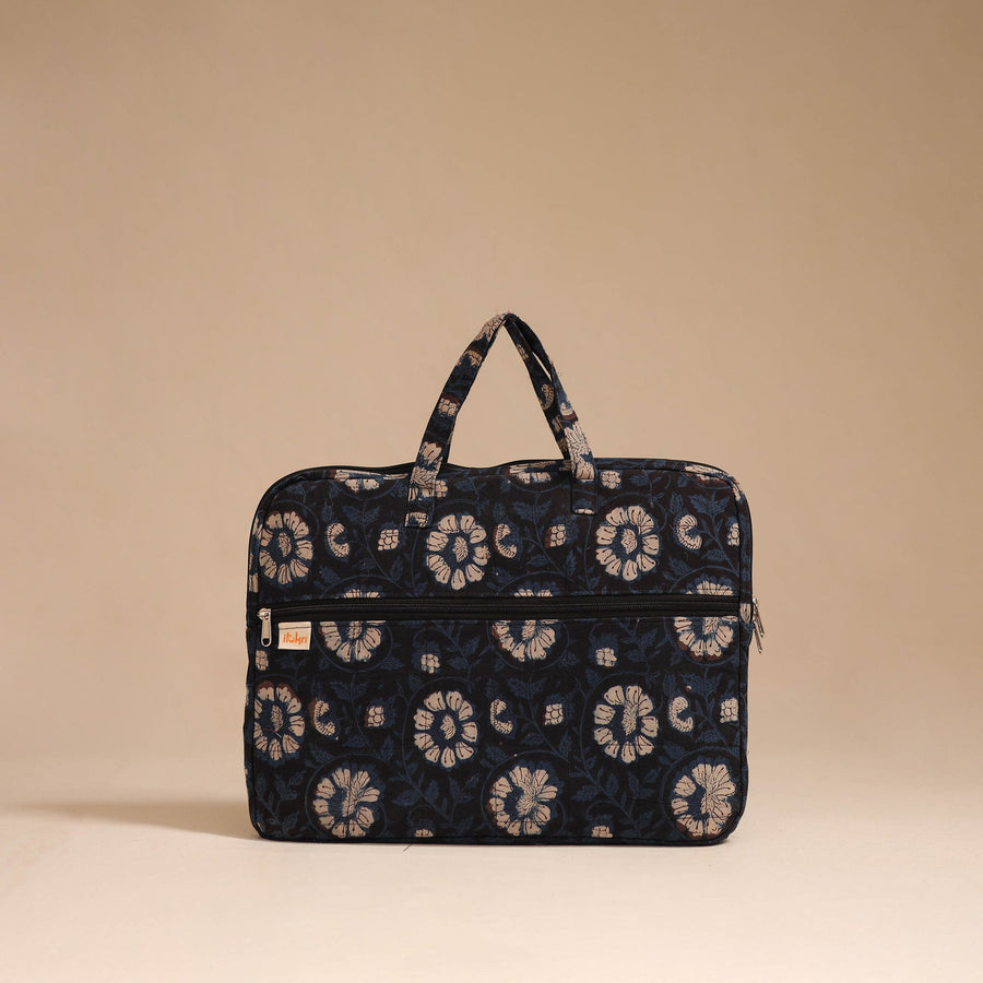 Keep your laptop safe and stylish with this beautifully black quilted cotton laptop bag made by iTokri’s artisans. It features soft inner padding for extra protection, it offers gentle protection against bumps and scratches. The sturdy fabric handles ensure easy handling, while the spacious compartment fits most laptops with ease. A front zipper pocket adds convenience for storing daily essentials during travel or work.