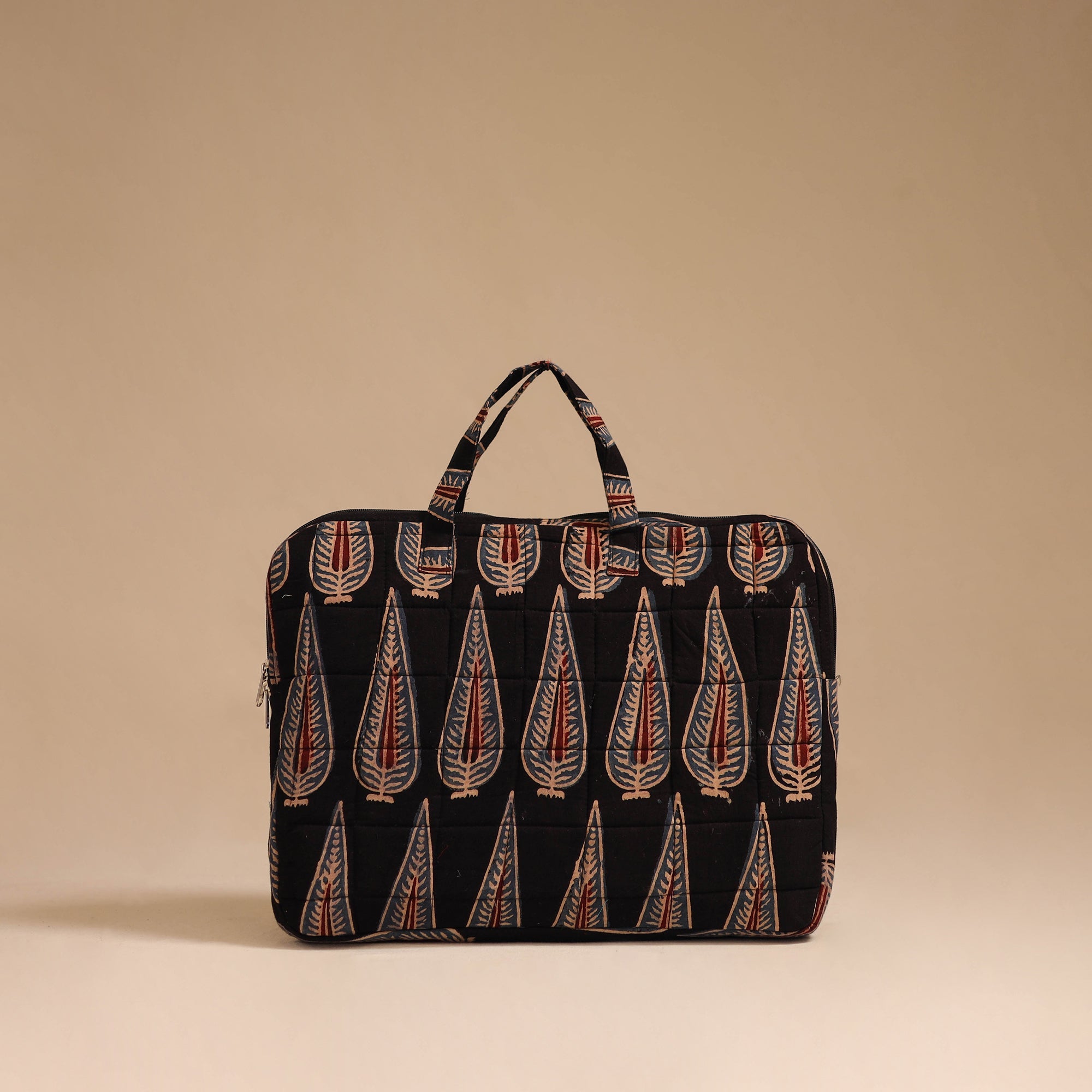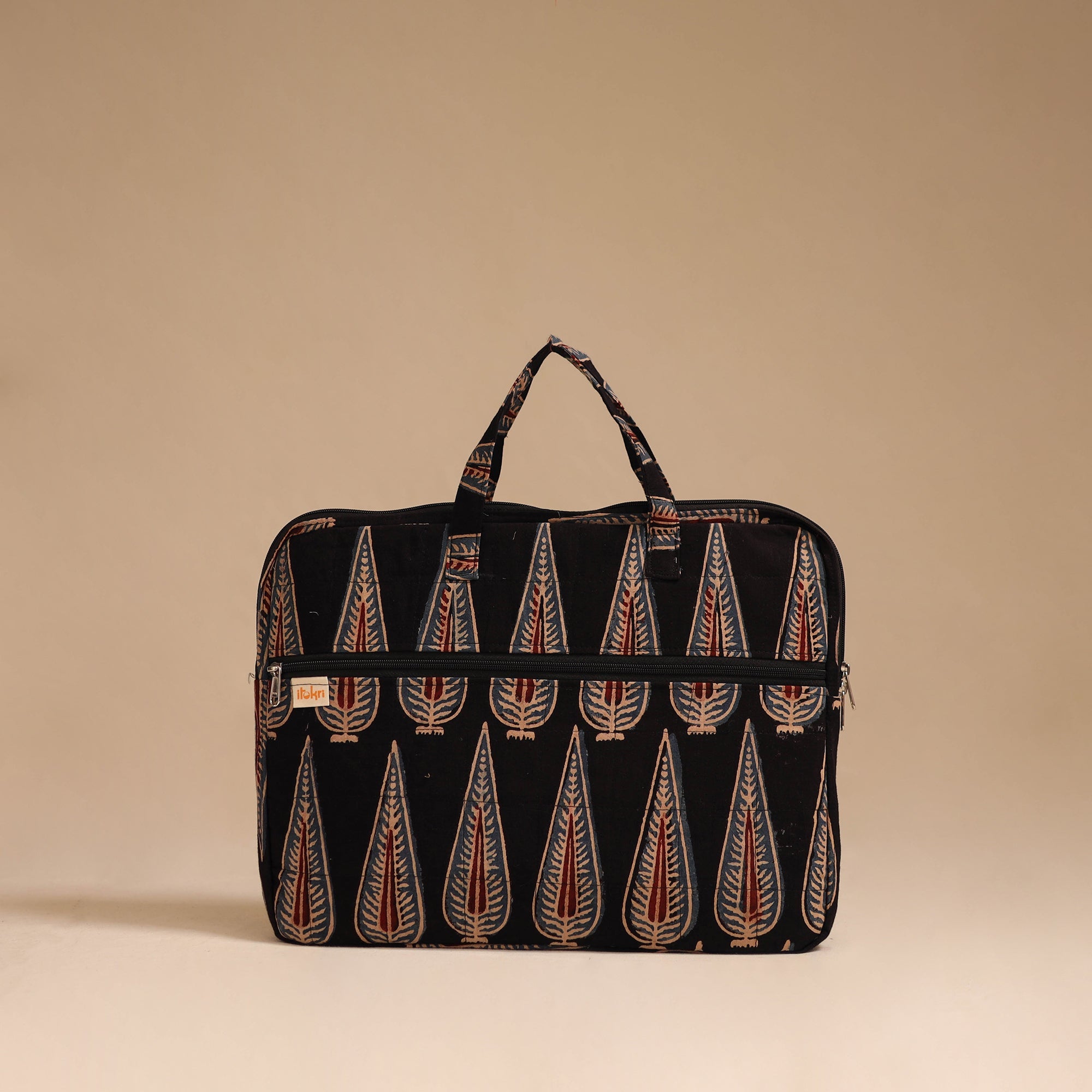 Keep your laptop safe and stylish with this beautifully black quilted cotton laptop bag made by iTokri’s artisans. It features soft inner padding for extra protection, it offers gentle protection against bumps and scratches. The sturdy fabric handles ensure easy handling, while the spacious compartment fits most laptops with ease. A front zipper pocket adds convenience for storing daily essentials during travel or work.