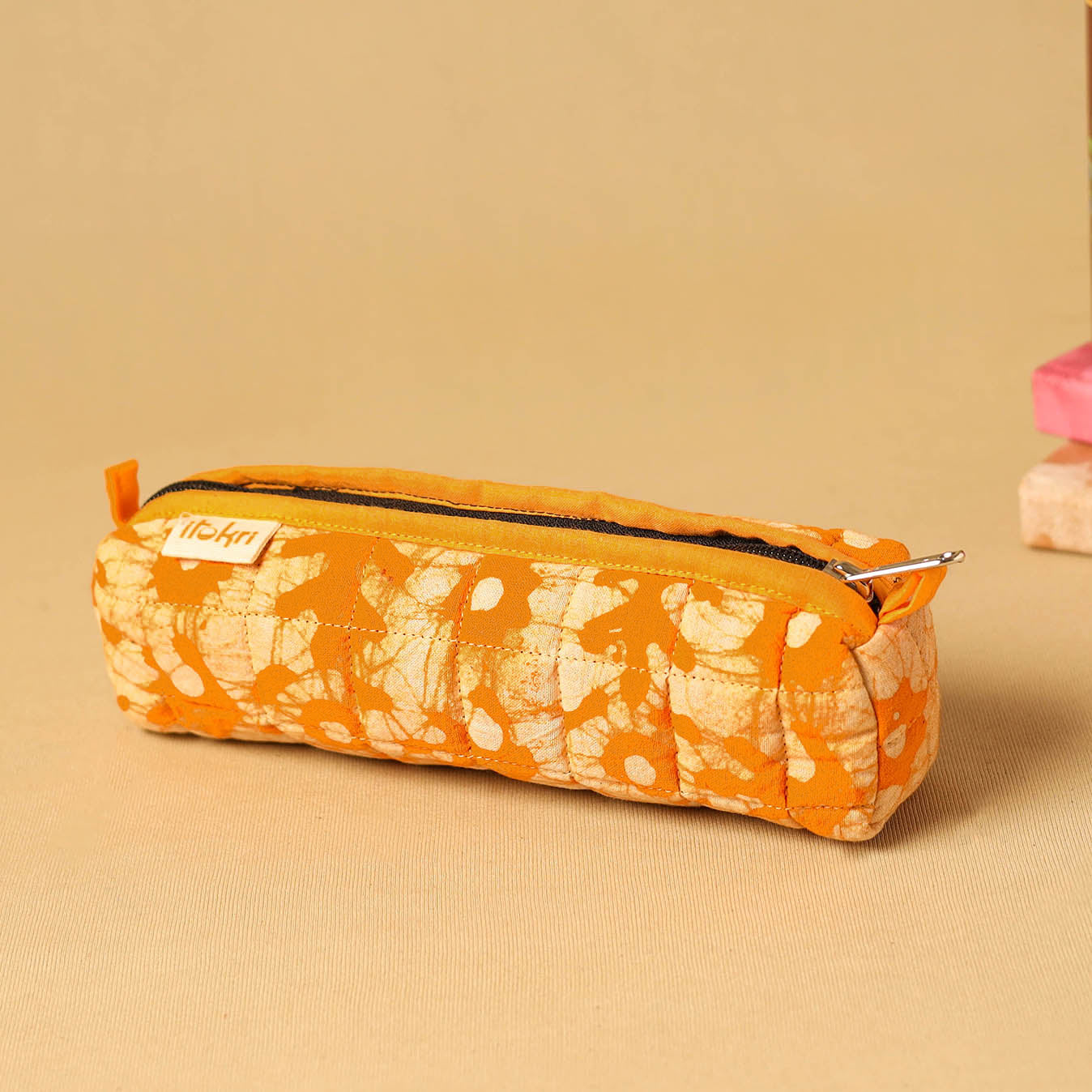 Add a charming touch to your daily essentials with this orange cotton pencil pouch. Designed for both elegance and durability, its quilted finish offers reliable protection. Versatile and spacious, it neatly fits pens, pencils, and small accessories. Perfect for school, college, or travel.
