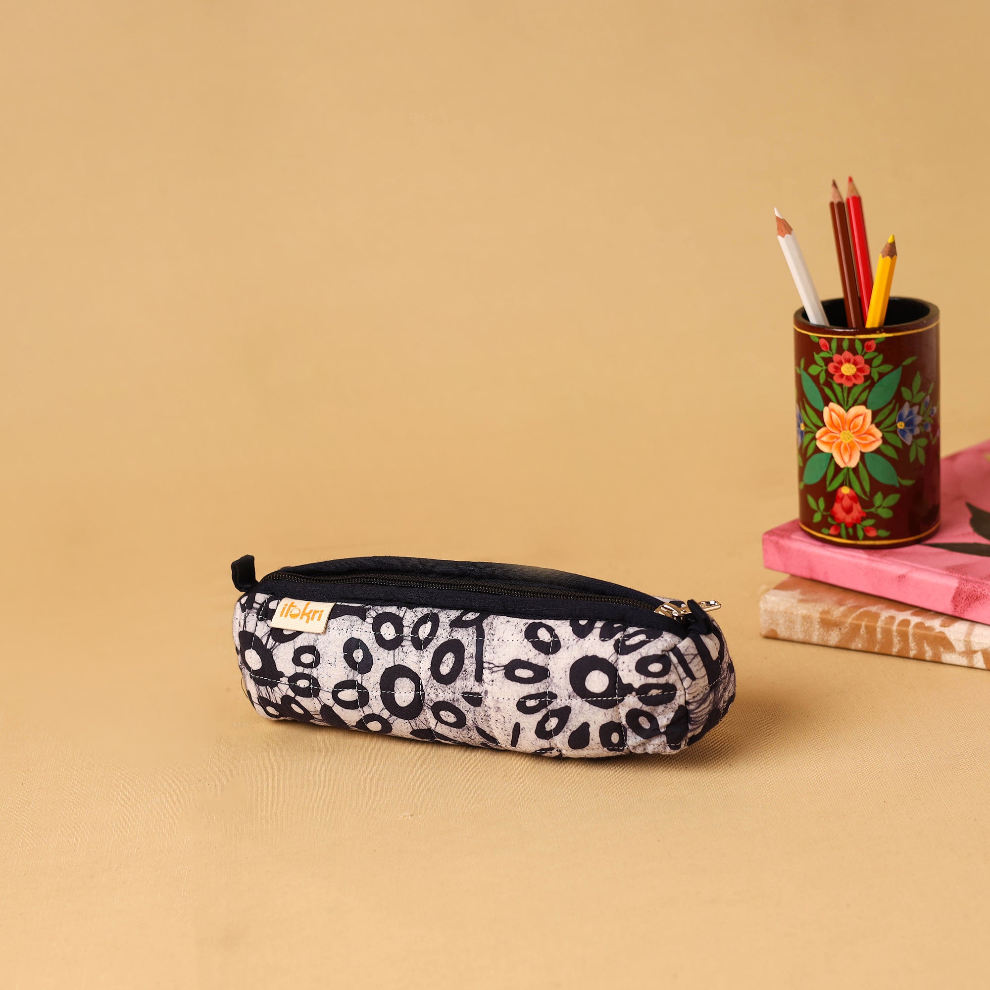 Add a charming touch to your daily essentials with this beige cotton pencil pouch. Designed for both elegance and durability, its quilted finish offers reliable protection. Versatile and spacious, it neatly fits pens, pencils, and small accessories. Perfect for school, college, or travel.