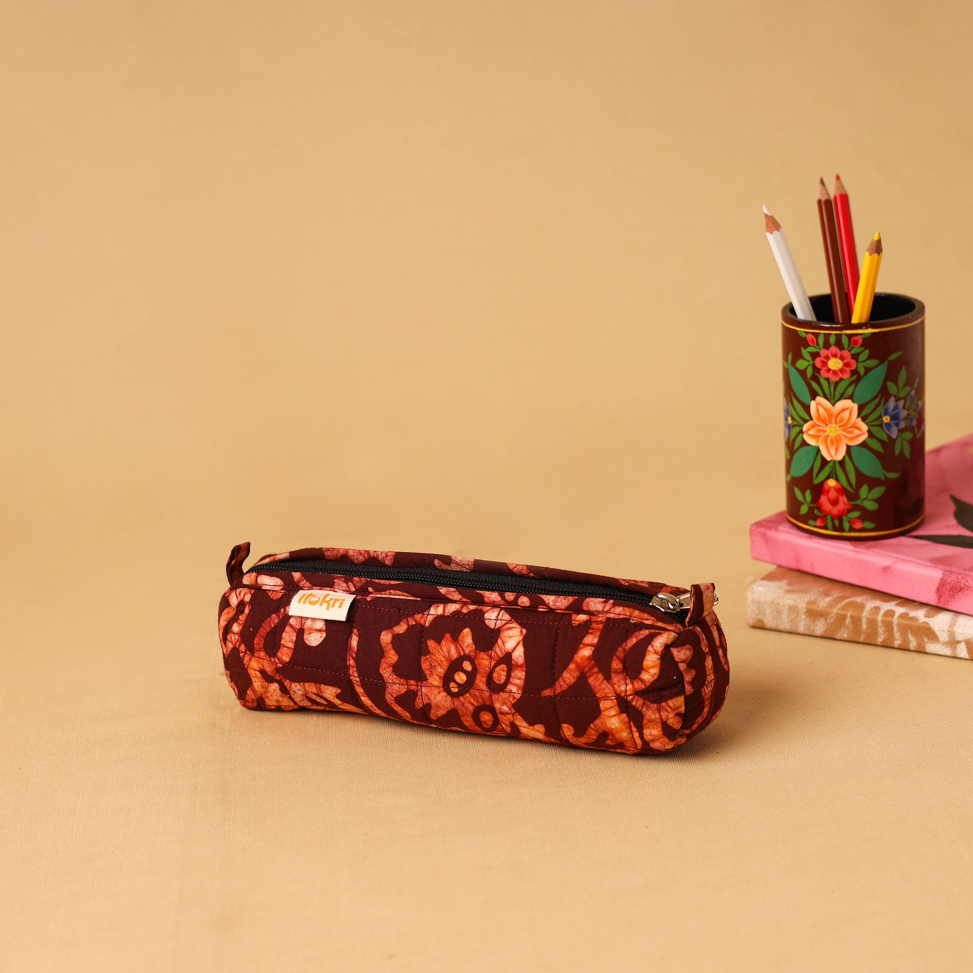 Add a charming touch to your daily essentials with this red cotton pencil pouch. Designed for both elegance and durability, its quilted finish offers reliable protection. Versatile and spacious, it neatly fits pens, pencils, and small accessories. Perfect for school, college, or travel.