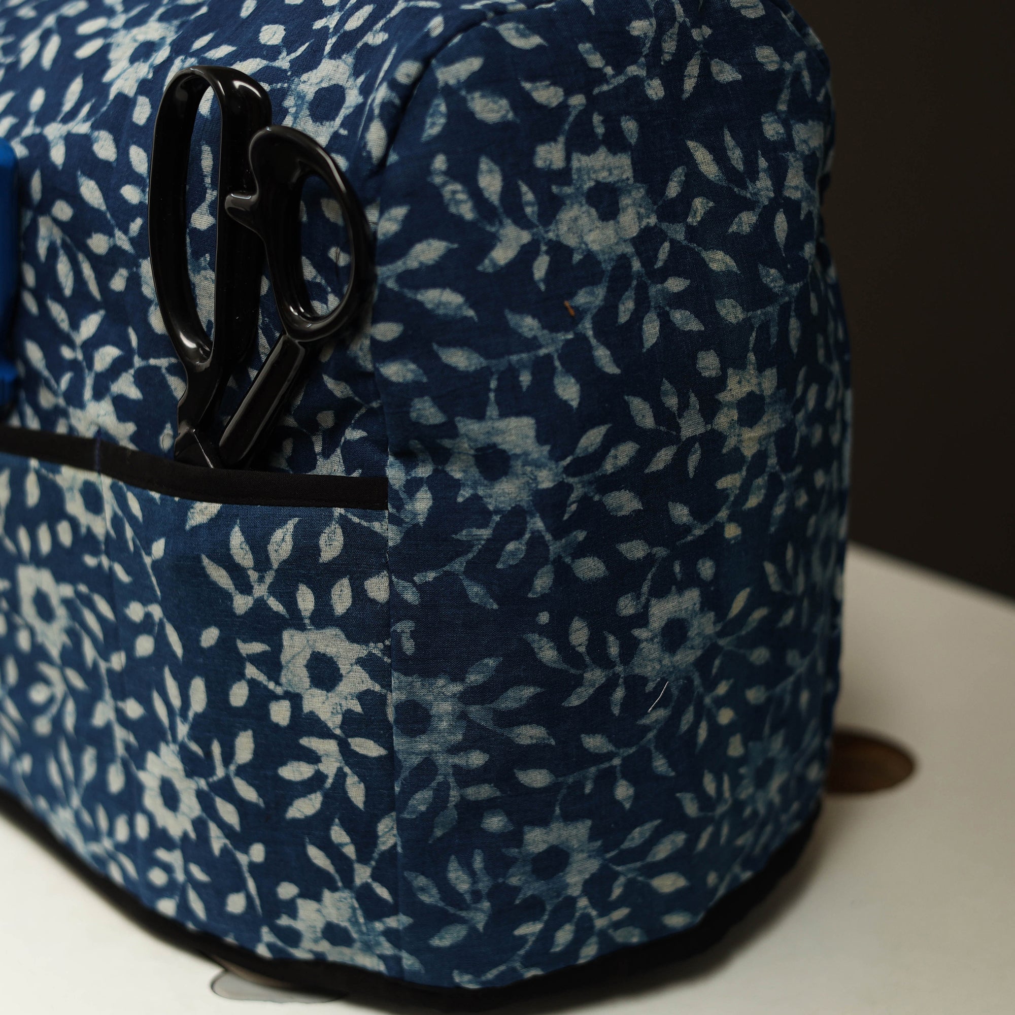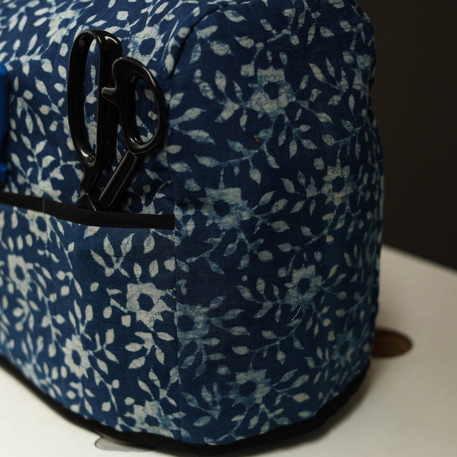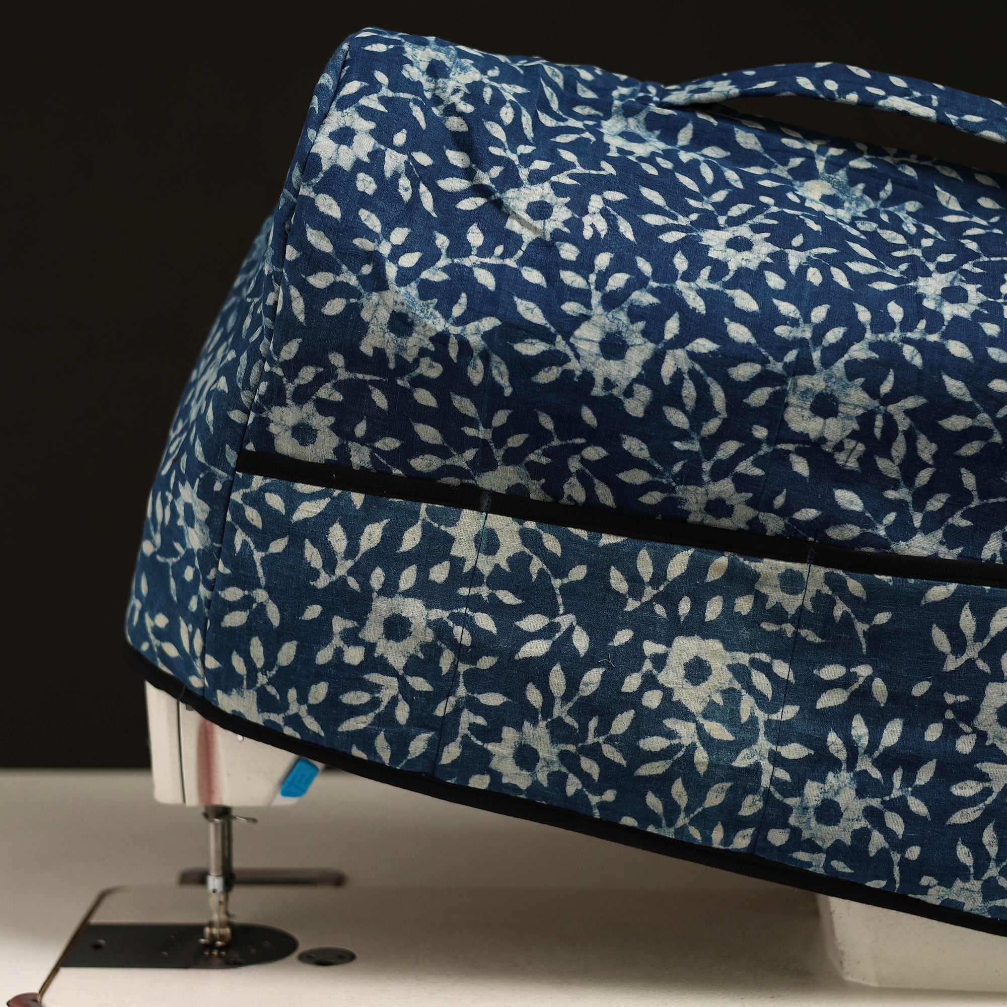 | Material | Handcrafted cotton blue sewing machine cover protects your machine from dust and dirt while adding style to your workspace. Textured with handmade textiles of India, it features four convenient pockets for storing threads, needles, and accessories, reflecting the artistry of local artisans. |