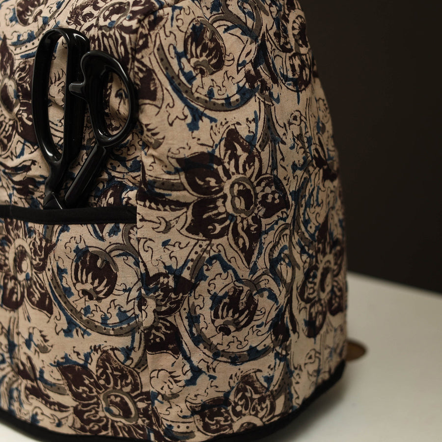 Material Handcrafted cotton beige sewing machine cover protects your machine from dust and dirt while adding style to your workspace. Textured with handmade textiles of India, it features four convenient pockets for storing threads, needles, and accessories, reflecting the artistry of local artisans.