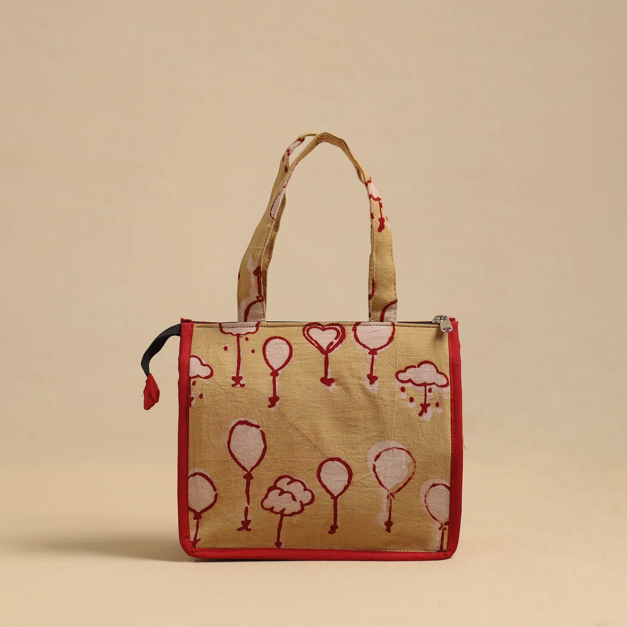 This brown handcrafted cotton small hand bag for women combines timeless style with functionality. Made by skilled artisans, it features ample space for daily essentials, an internal zipped pocket, and a convenient front pocket. Perfect for daily use or special occasions.