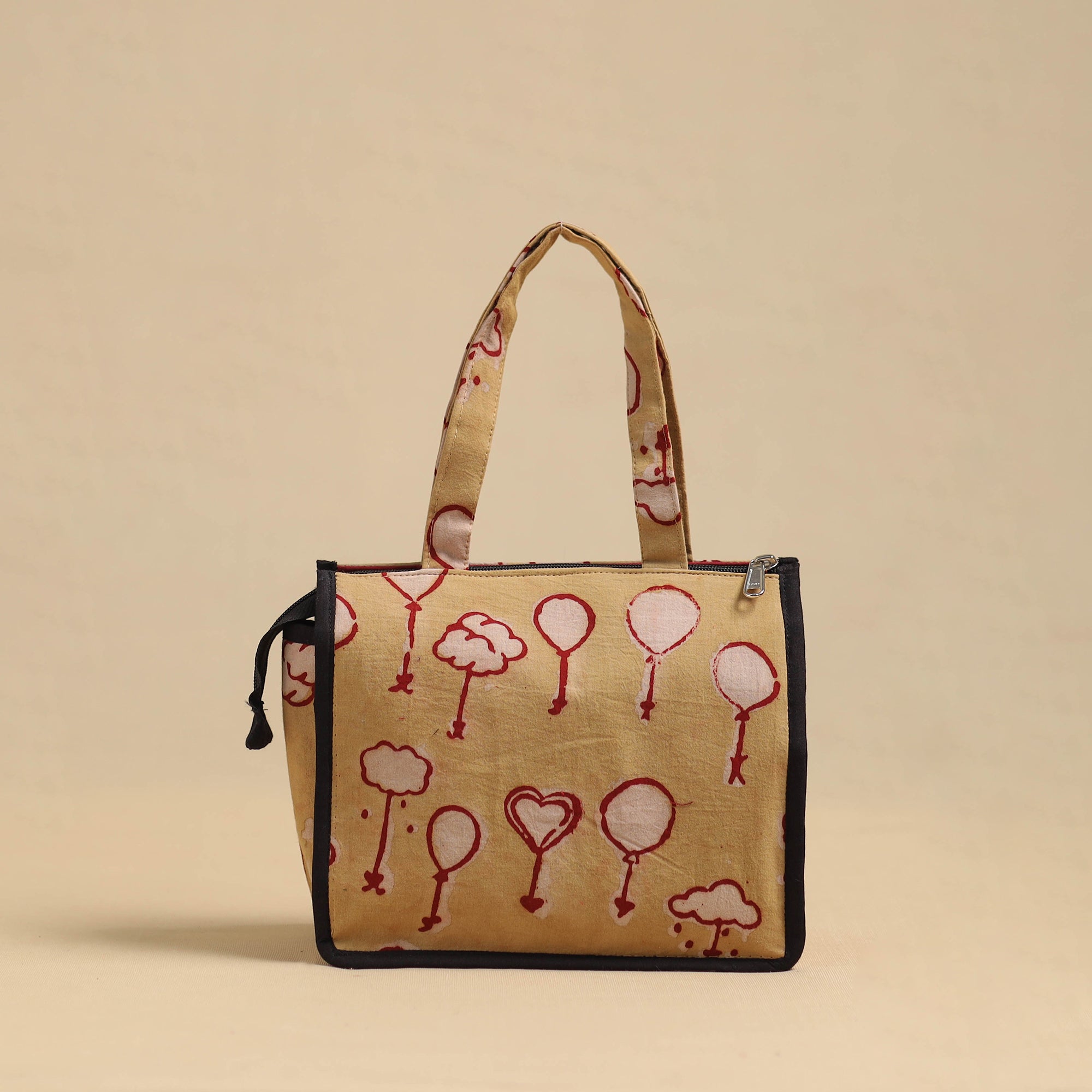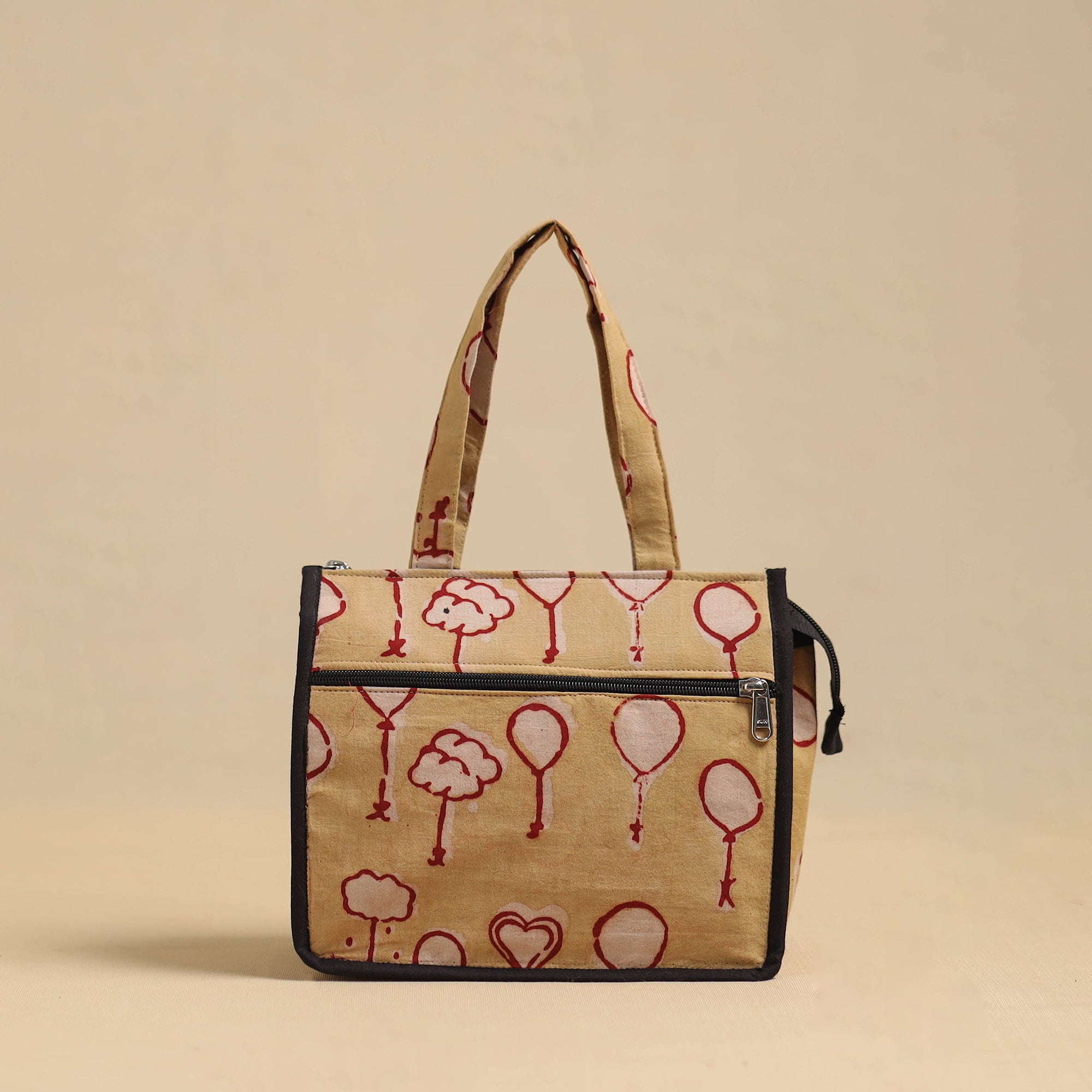 This brown handcrafted cotton small hand bag for women combines timeless style with functionality. Made by skilled artisans, it features ample space for daily essentials, an internal zipped pocket, and a convenient front pocket. Perfect for daily use or special occasions.