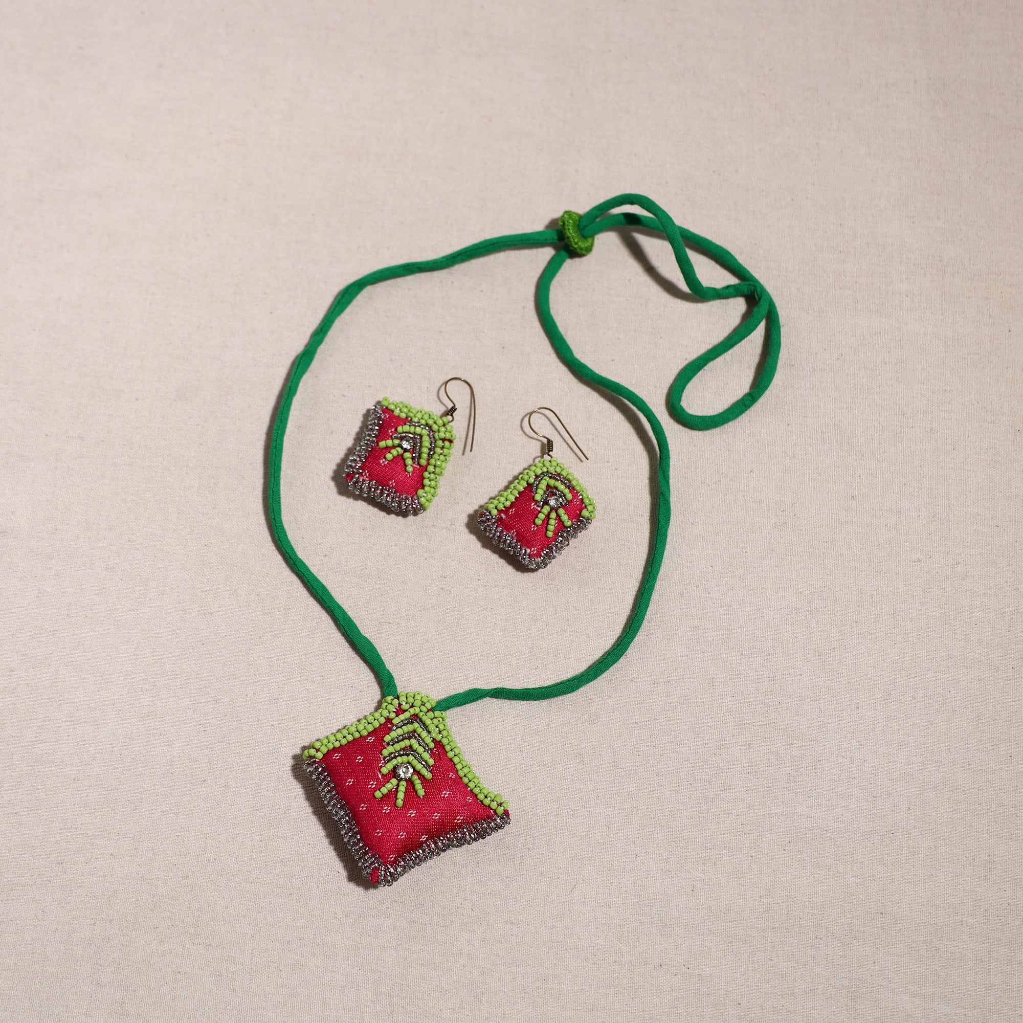 Enhance your style with this green handcrafted fabart beaded necklace set, featuring vibrant beads and artistry. A perfect blend of elegance and traditional charm