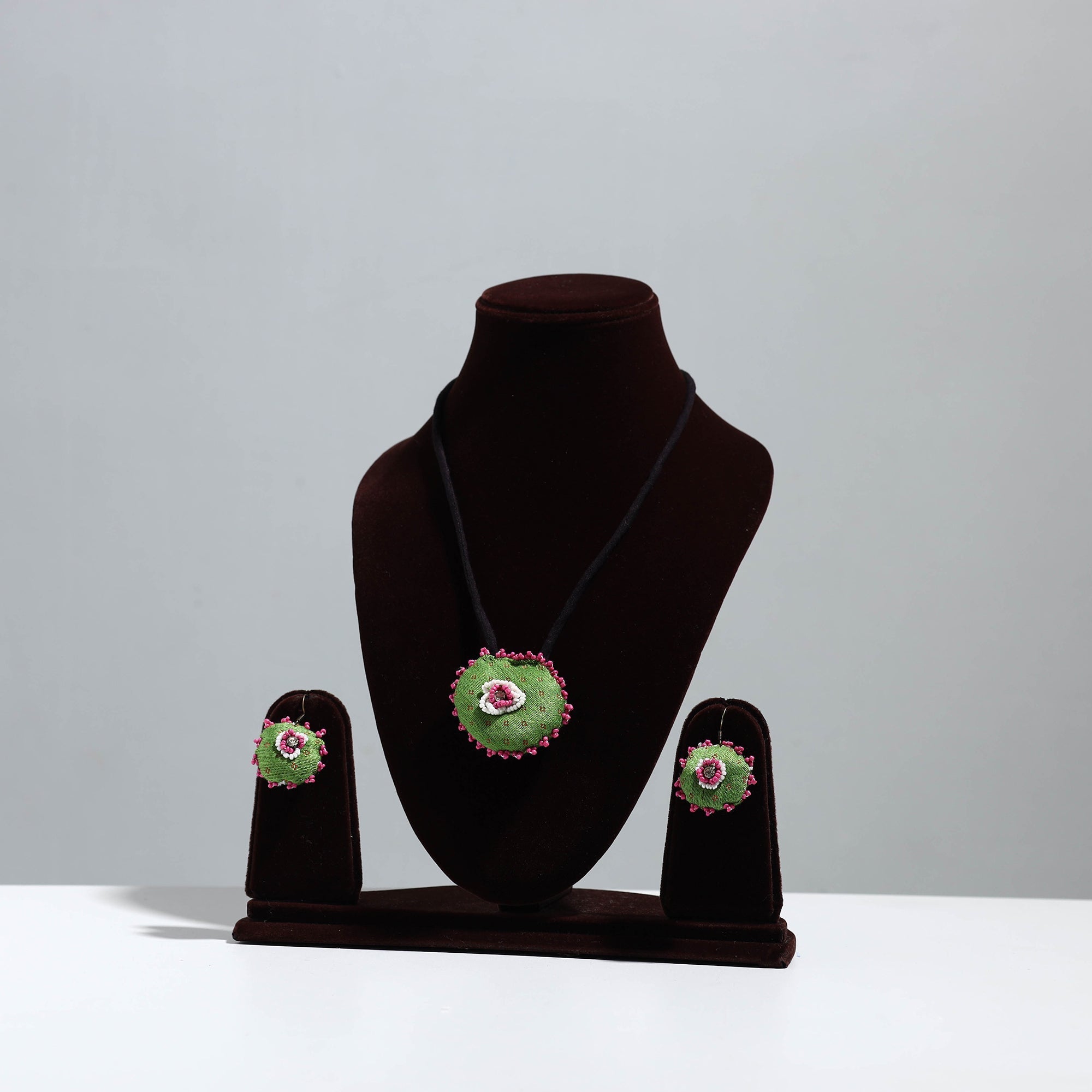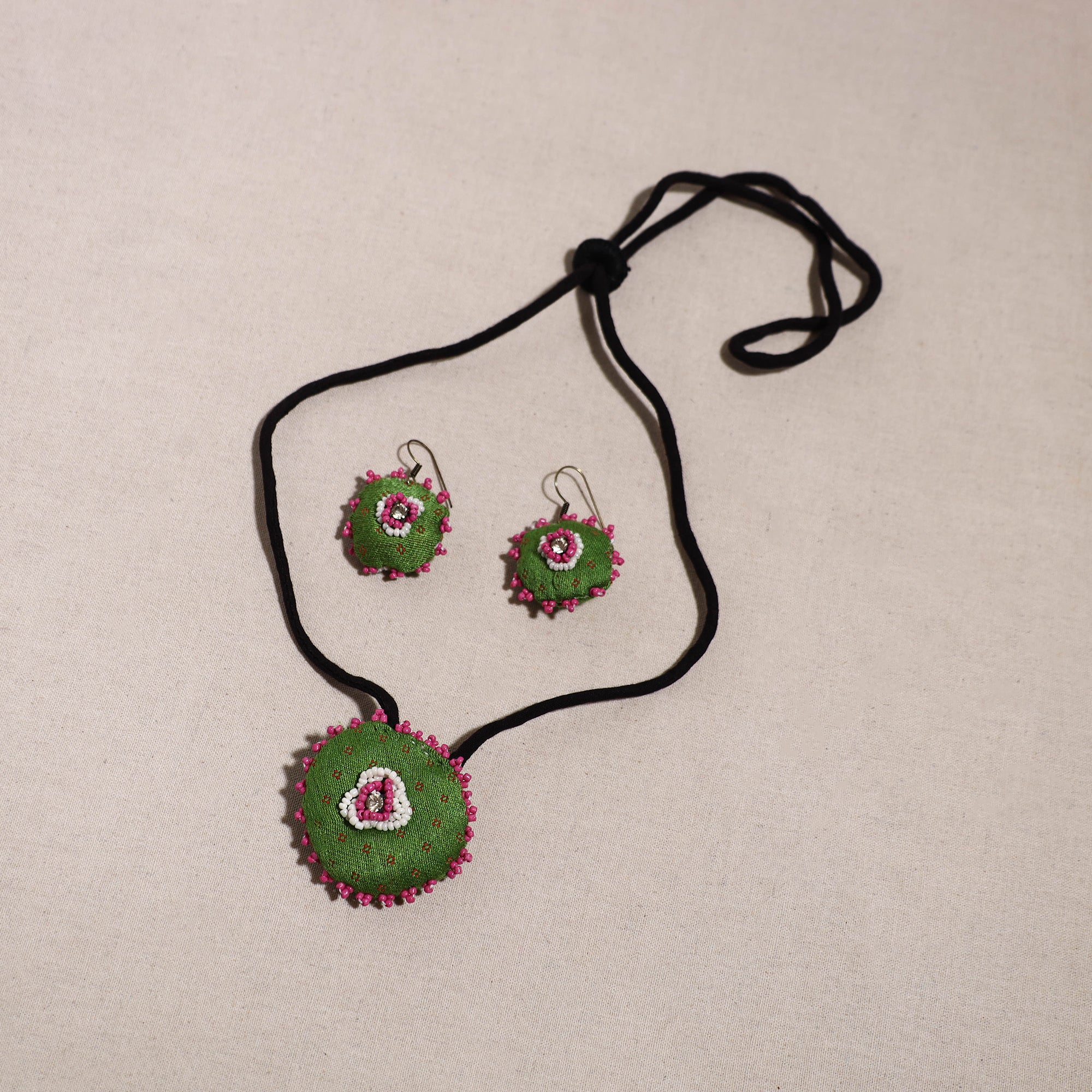 Enhance your style with this green handcrafted fabart beaded necklace set, featuring vibrant beads and artistry. A perfect blend of elegance and traditional charm