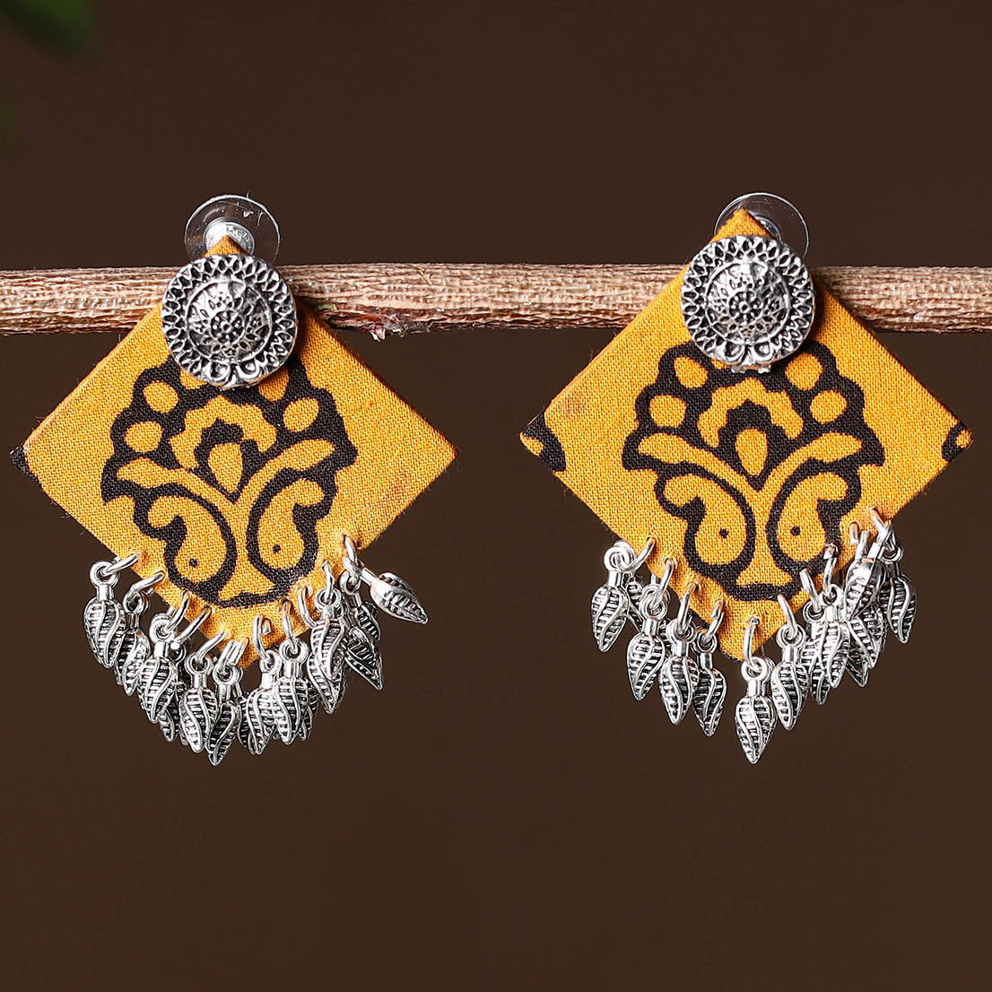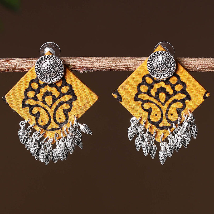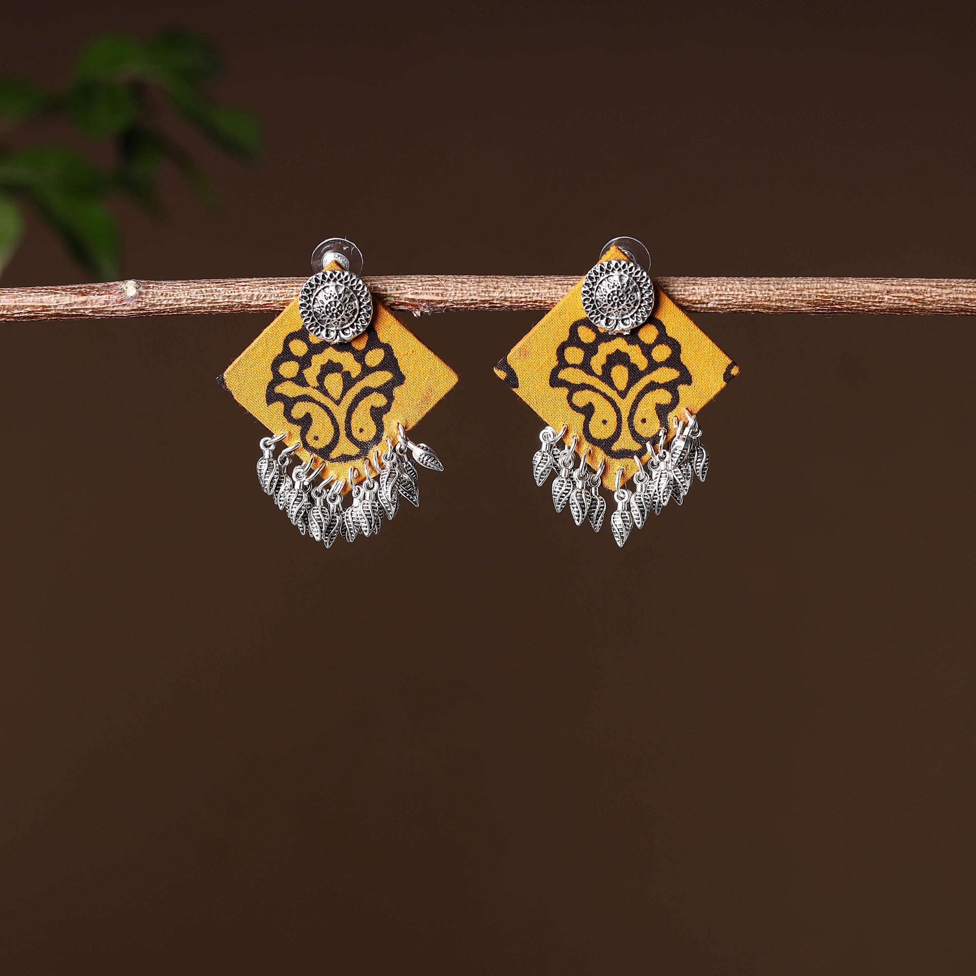 Enhance your everyday style with our yellow handcrafted fabart GS earrings. Featuring intricate beadwork and fabric detailing, they make the perfect accessory for both casual and festive outfits. Explore our collection and adorn yourself with cultural elegance today.