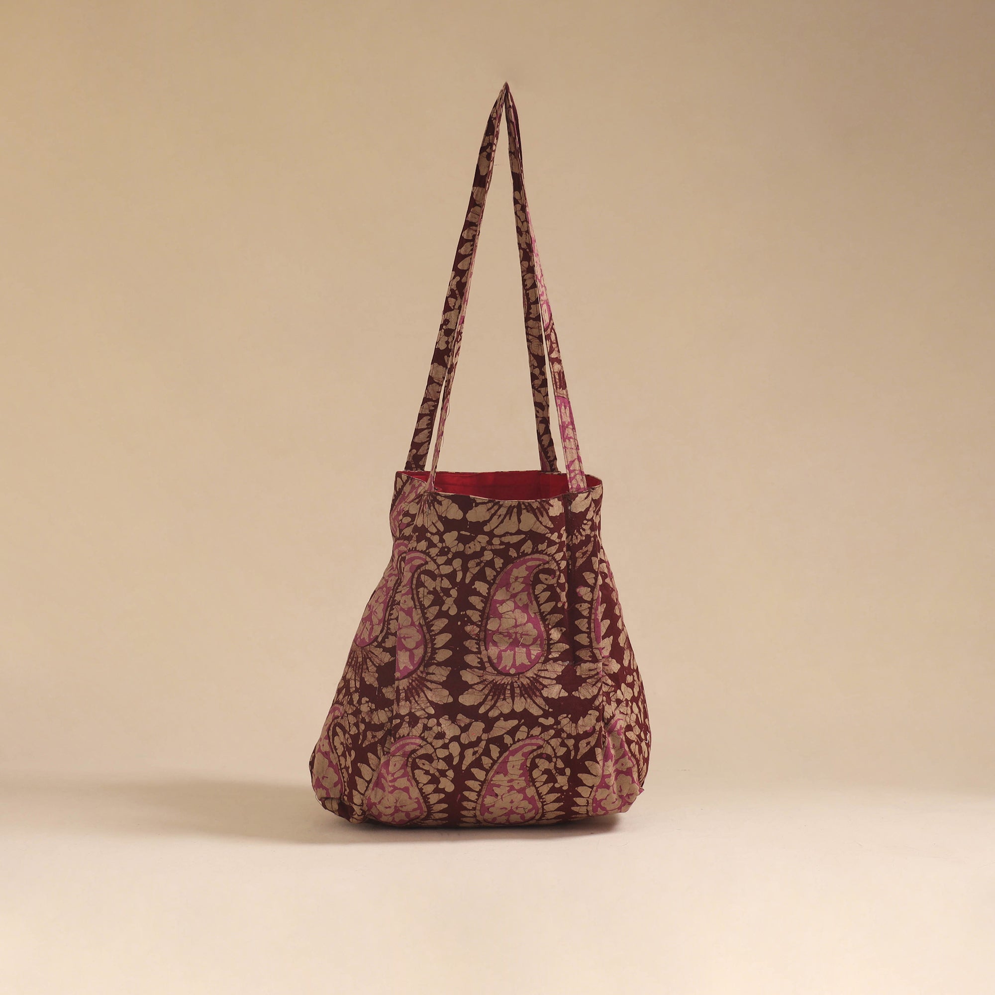 This maroon jhola bag adds a touch of tradition to your everyday look. Made from cotton using authentic Indian textiles, it’s lightweight and easy to carry. The spacious interior with an inner pocket keeps your essentials neatly organized, making it perfect for daily use, shopping.