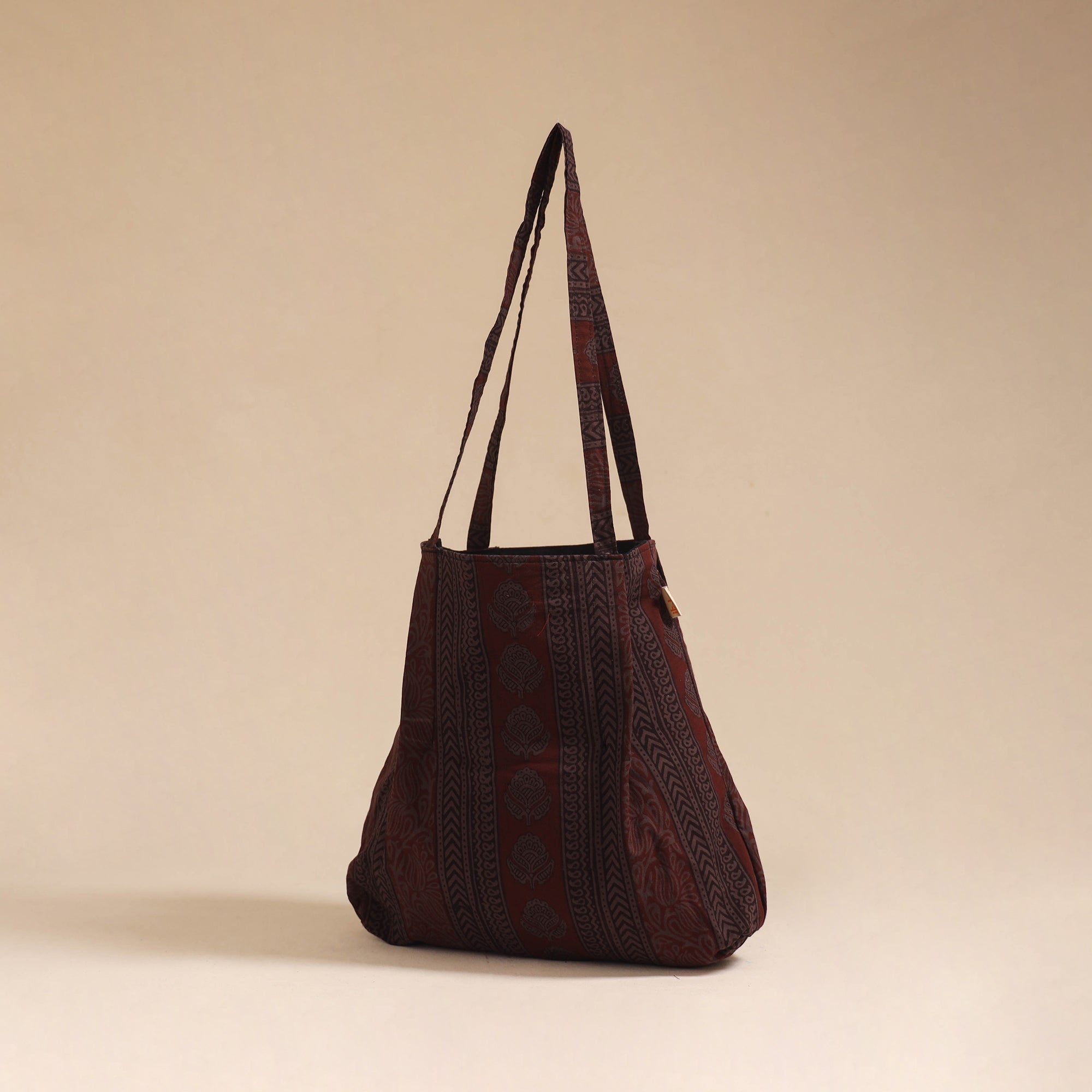 This brown jhola bag adds a touch of tradition to your everyday look. Made from cotton using authentic Indian textiles, it’s lightweight and easy to carry. The spacious interior with an inner pocket keeps your essentials neatly organized, making it perfect for daily use, shopping.