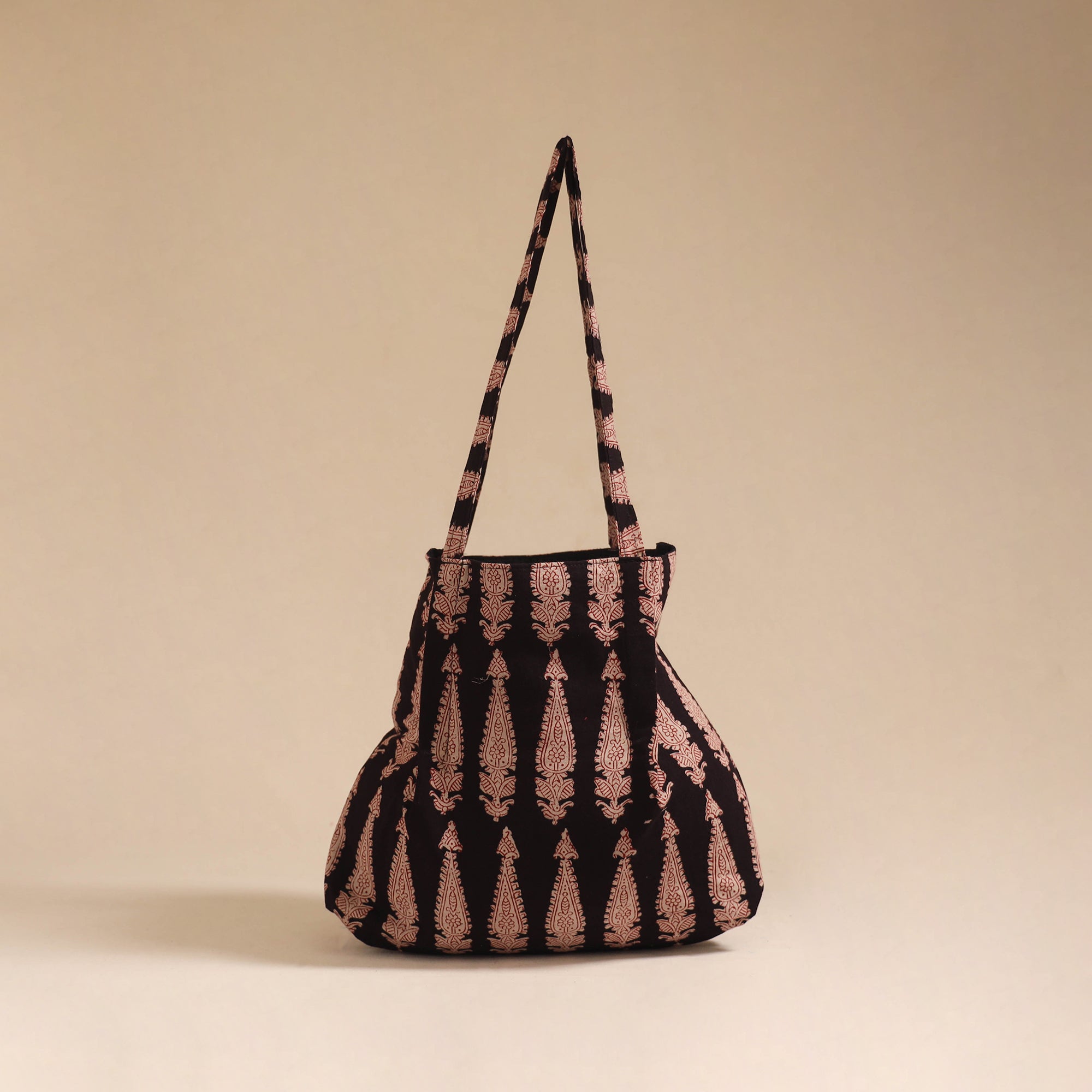 This black jhola bag adds a touch of tradition to your everyday look. Made from cotton using authentic Indian textiles, it’s lightweight and easy to carry. The spacious interior with an inner pocket keeps your essentials neatly organized, making it perfect for daily use, shopping.