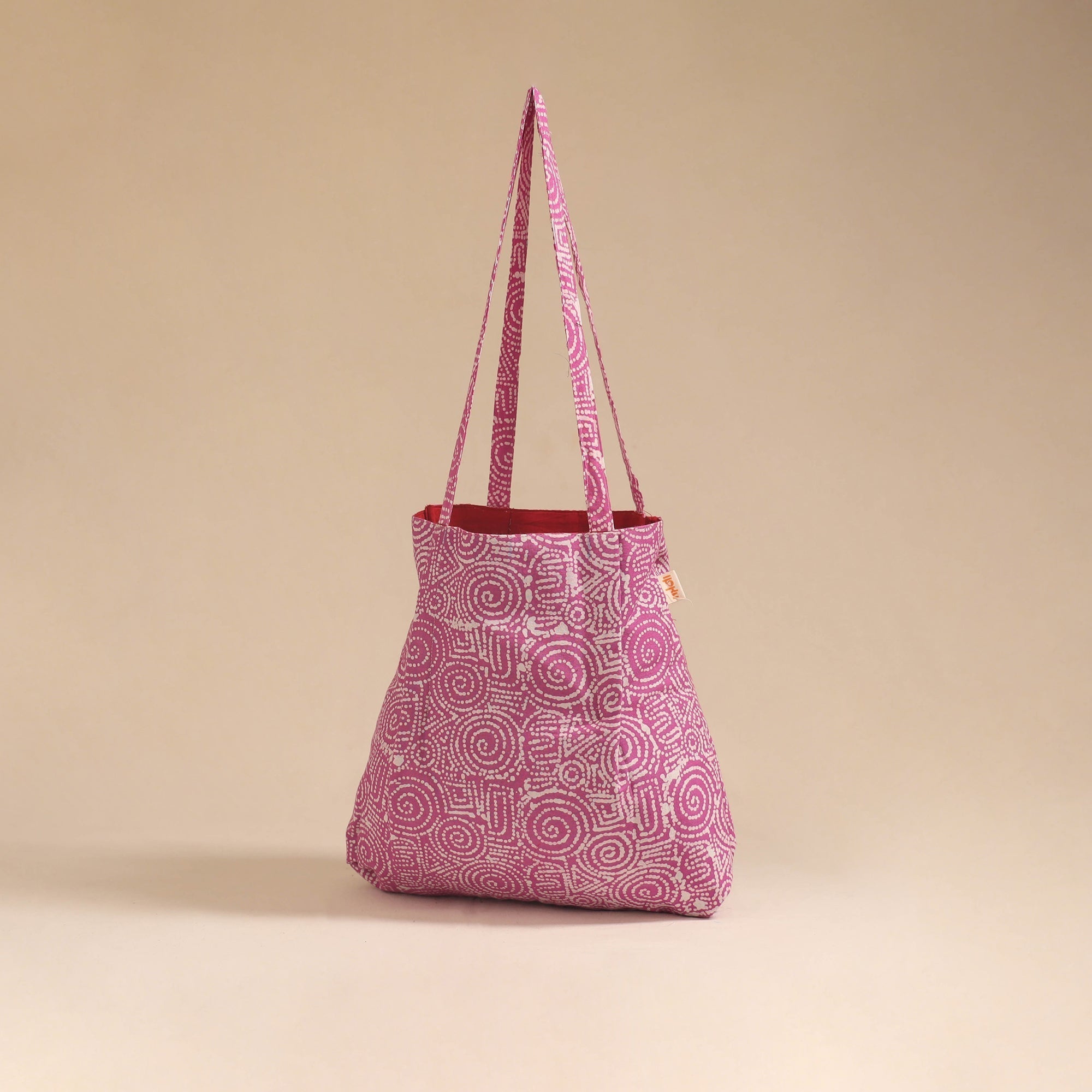 This pink jhola bag adds a touch of tradition to your everyday look. Made from cotton using authentic Indian textiles, it’s lightweight and easy to carry. The spacious interior with an inner pocket keeps your essentials neatly organized, making it perfect for daily use, shopping.