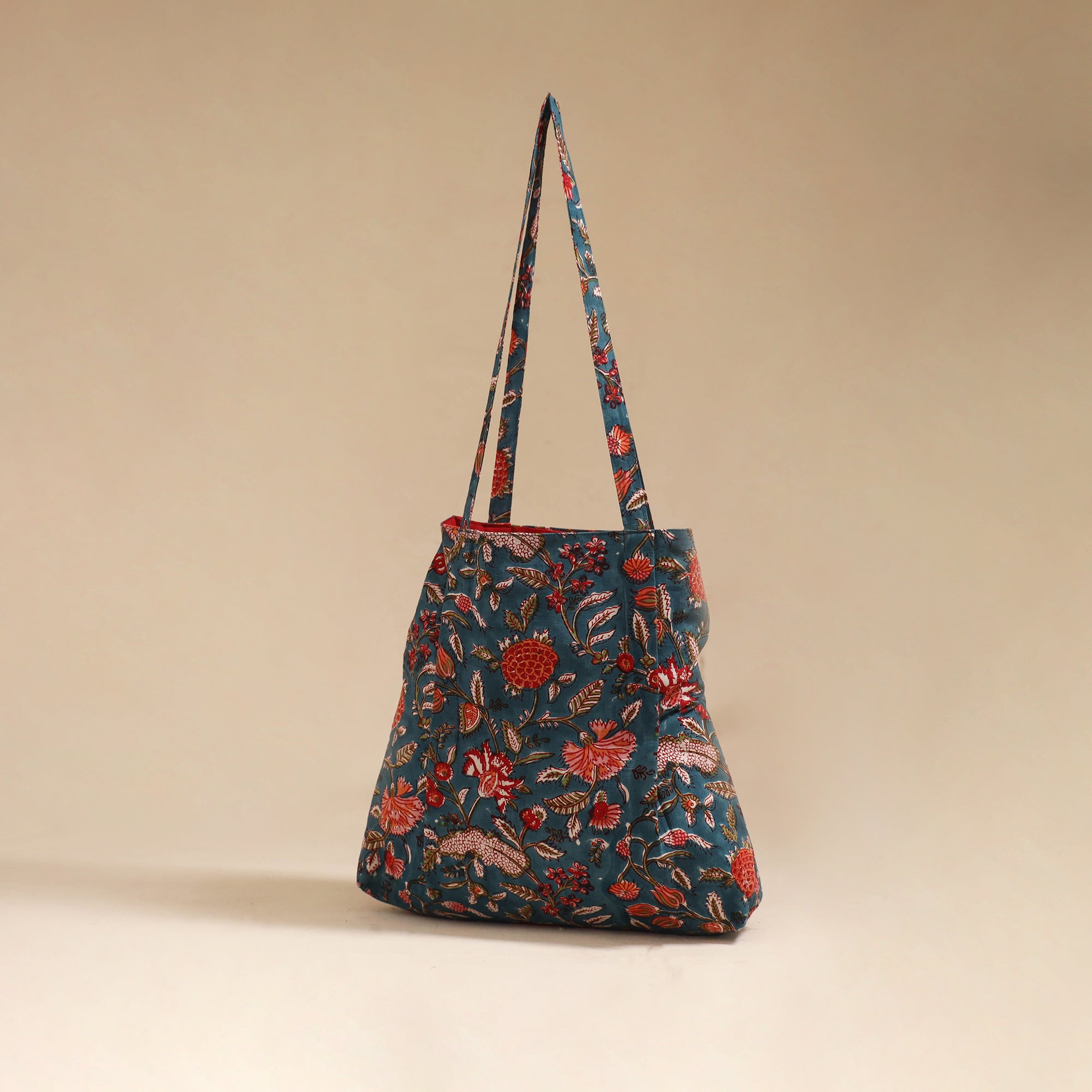 Blue handcrafted fabric jhola bag that beautifully blends tradition with everyday style. Made using handmade Indian cotton textiles, it features a spacious design with an inner pocket, ideal for keeping your daily essentials organized.