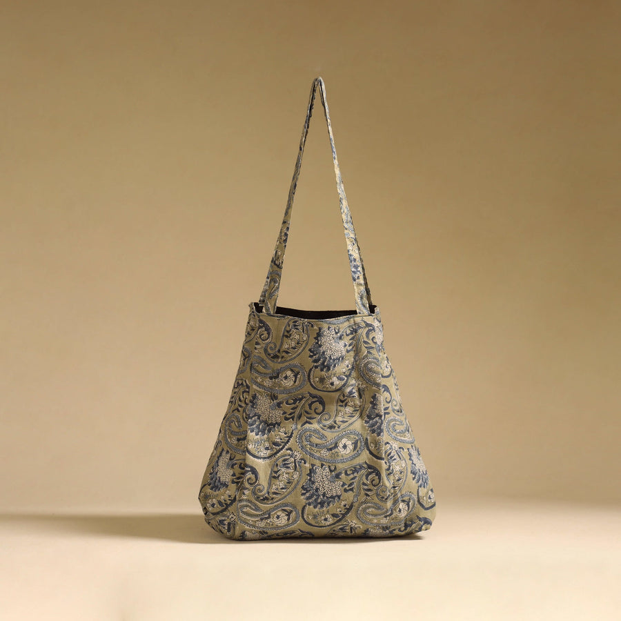 Green handcrafted fabric jhola bag that beautifully blends tradition with everyday style. Made using handmade Indian cotton textiles, it features a spacious design with an inner pocket, ideal for keeping your daily essentials organized.