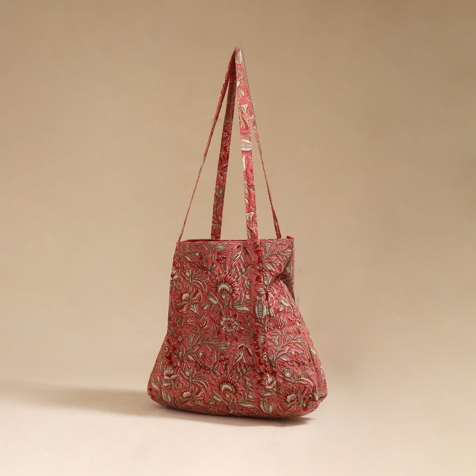 Red handcrafted fabric jhola bag that beautifully blends tradition with everyday style. Made using handmade Indian cotton textiles, it features a spacious design with an inner pocket, ideal for keeping your daily essentials organized.