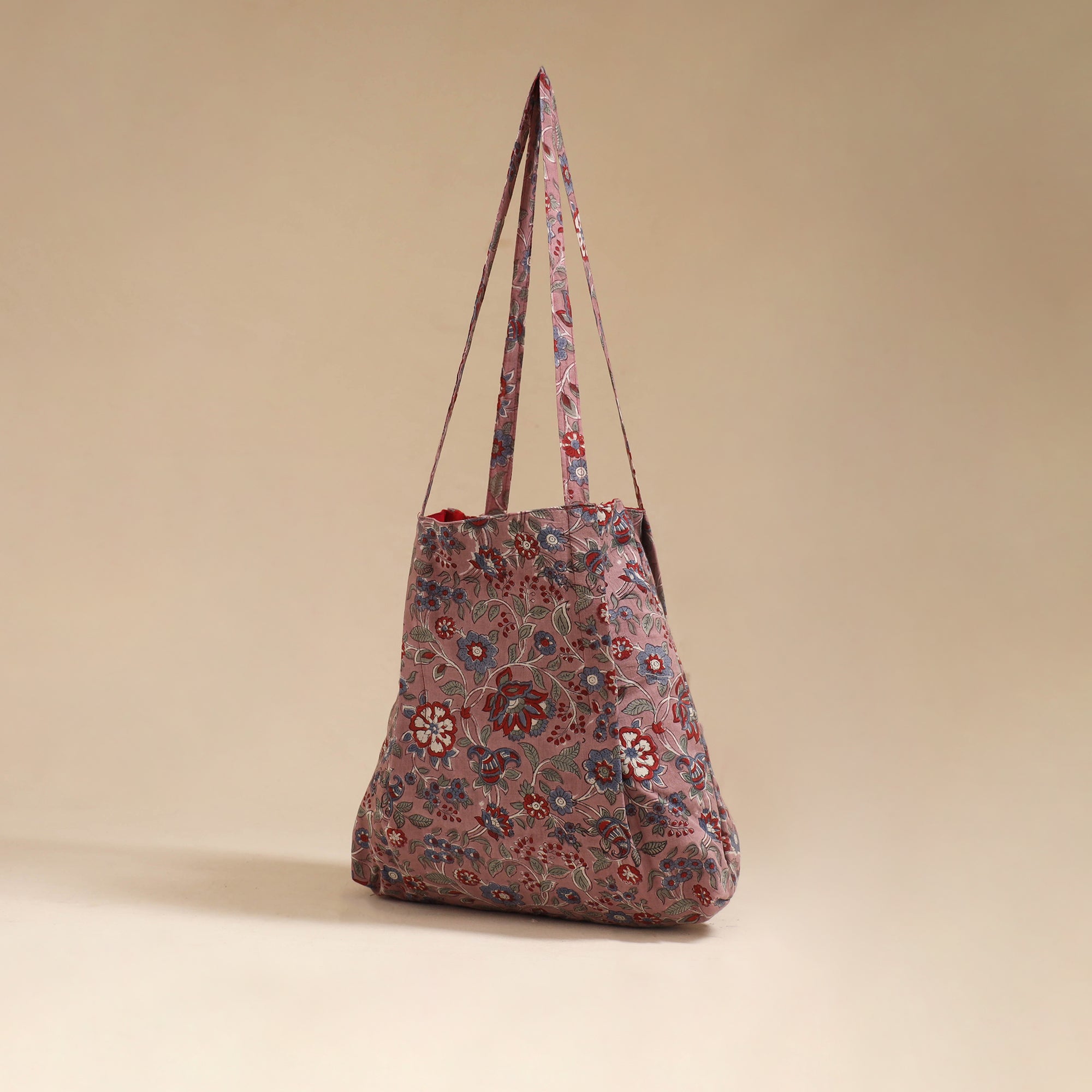 Pink Handcrafted fabric jhola bag that beautifully blends tradition with everyday style. Made using handmade Indian cotton textiles, it features a spacious design with an inner pocket, ideal for keeping your daily essentials organized.
