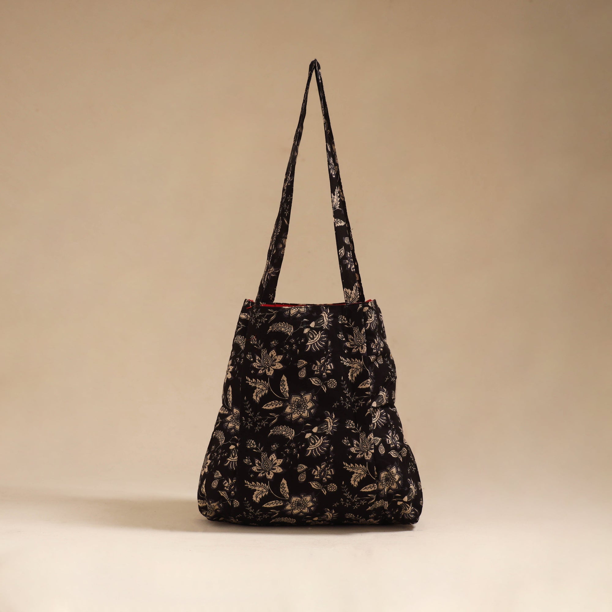 Black handcrafted fabric jhola bag that beautifully blends tradition with everyday style. Made using handmade Indian cotton textiles, it features a spacious design with an inner pocket, ideal for keeping your daily essentials organized.