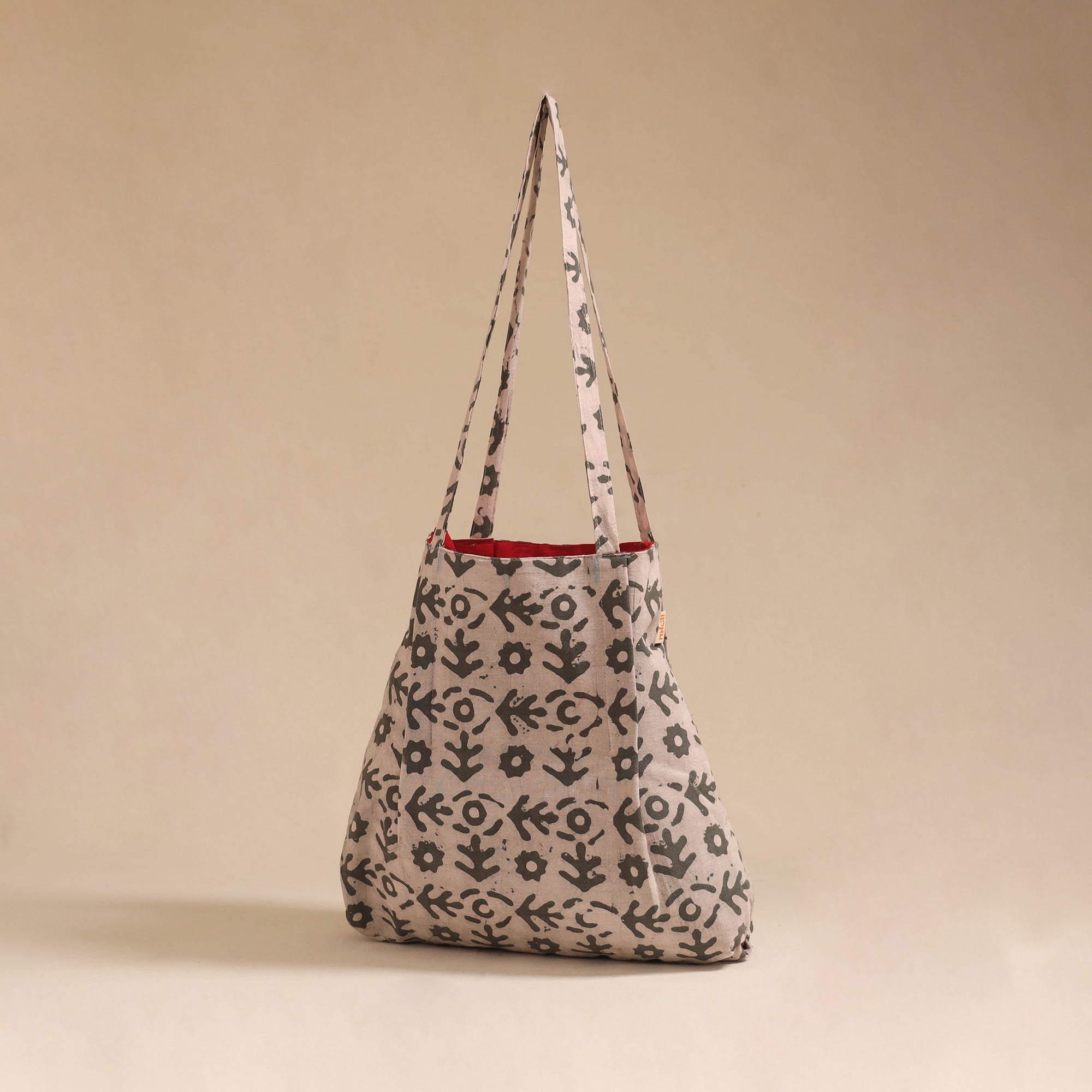 This beige jhola bag adds a touch of tradition to your everyday look. Made from cotton using authentic Indian textiles, it’s lightweight and easy to carry. The spacious interior with an inner pocket keeps your essentials neatly organized, making it perfect for daily use, shopping.