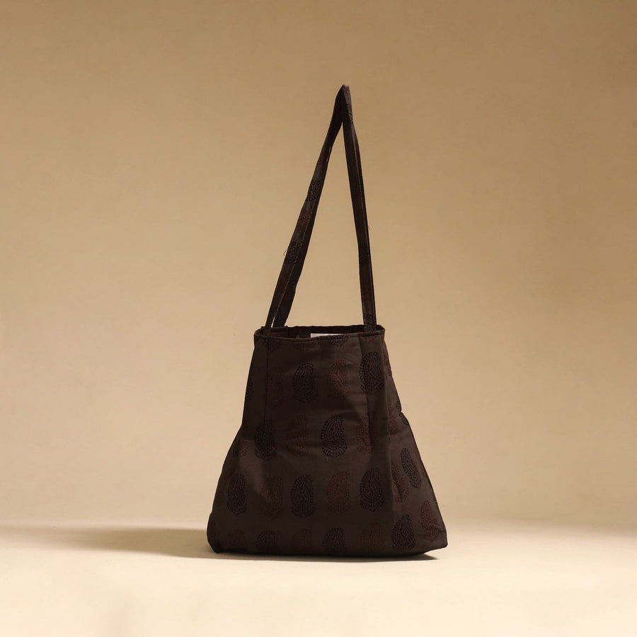 Brown handcrafted fabric jhola bag that beautifully blends tradition with everyday style. Made using handmade Indian cotton textiles, it features a spacious design with an inner pocket, ideal for keeping your daily essentials organized.