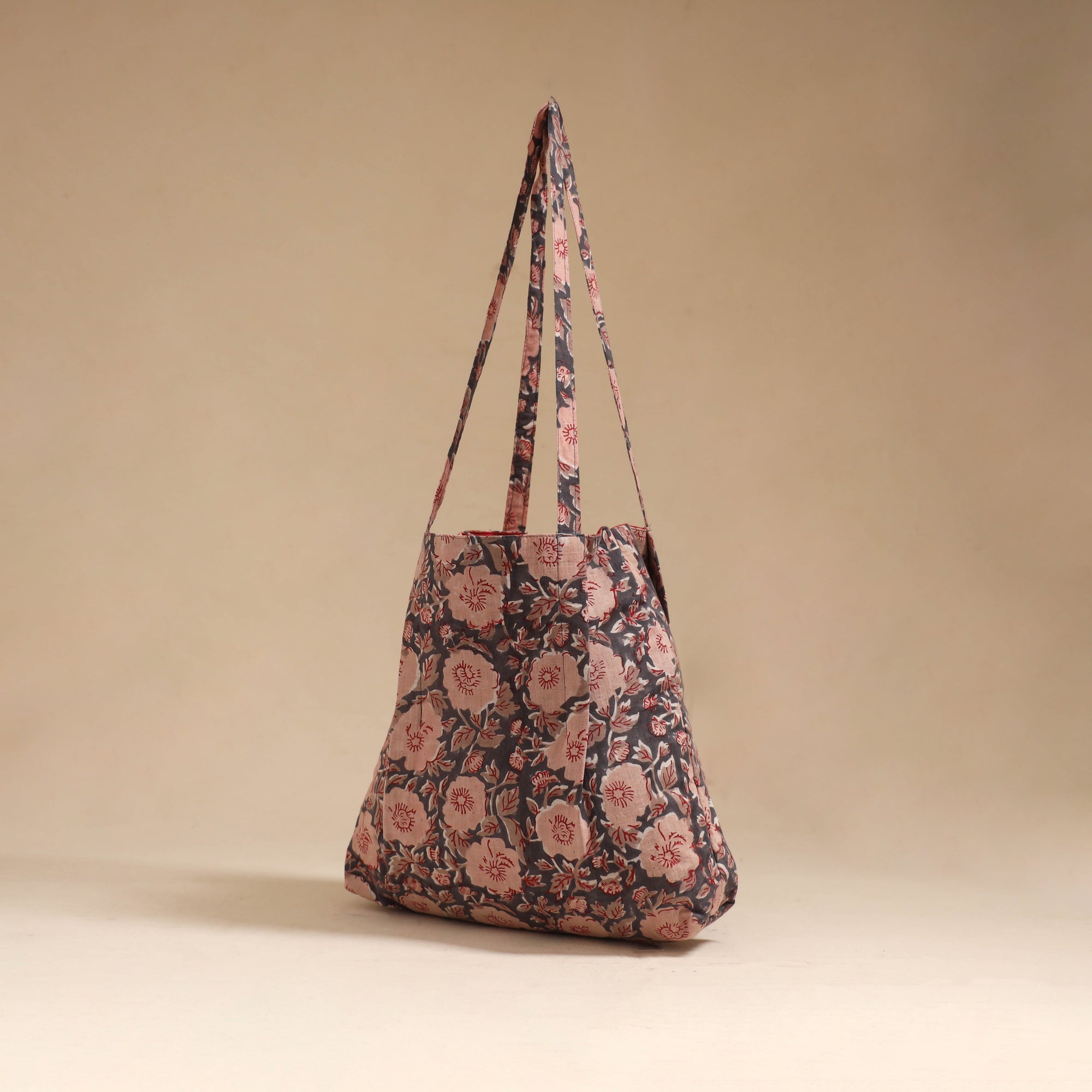 Brown handcrafted fabric jhola bag that beautifully blends tradition with everyday style. Made using handmade Indian cotton textiles, it features a spacious design with an inner pocket, ideal for keeping your daily essentials organized.