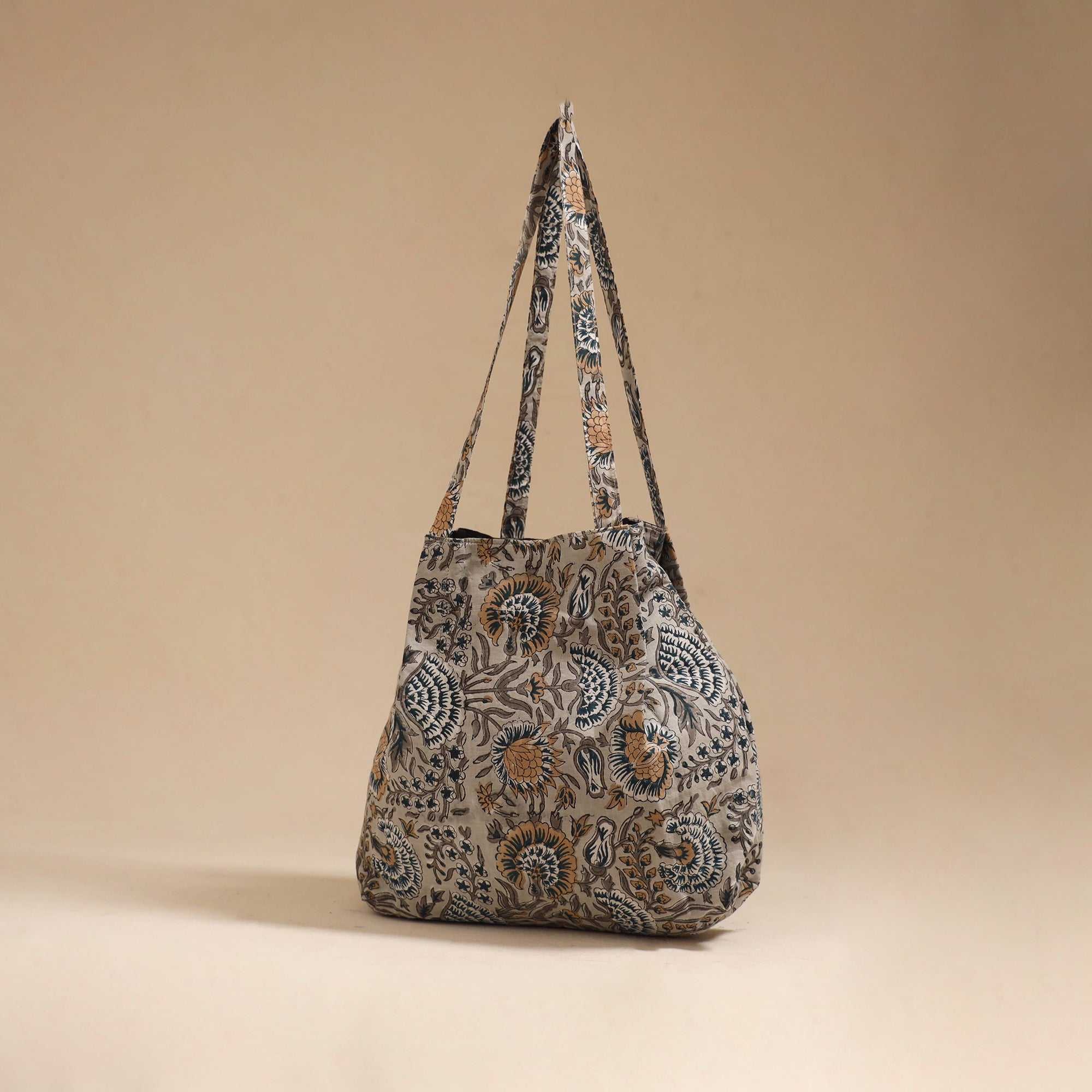 Beige Handcrafted fabric jhola bag that beautifully blends tradition with everyday style. Made using handmade Indian cotton textiles, it features a spacious design with an inner pocket, ideal for keeping your daily essentials organized.