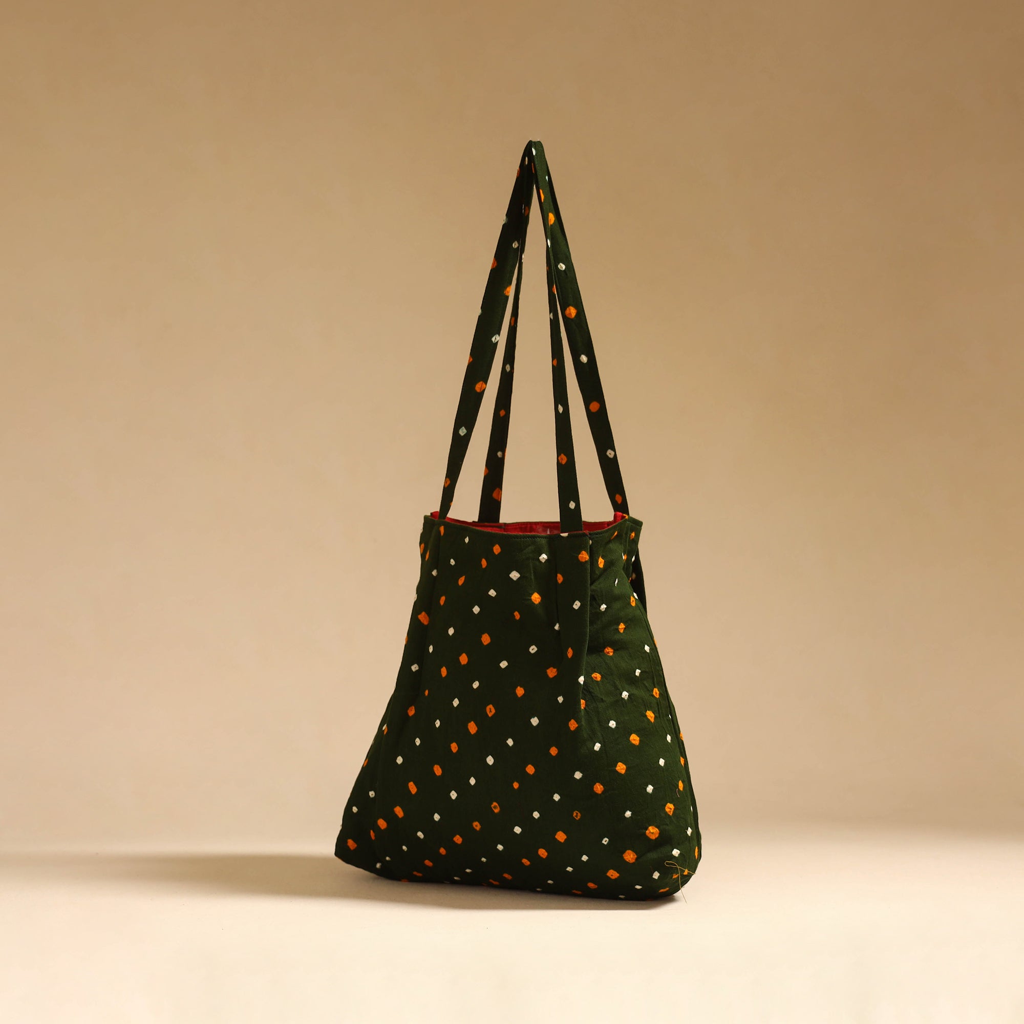 Green handcrafted fabric jhola bag that beautifully blends tradition with everyday style. Made using handmade Indian cotton textiles, it features a spacious design with an inner pocket, ideal for keeping your daily essentials organized.