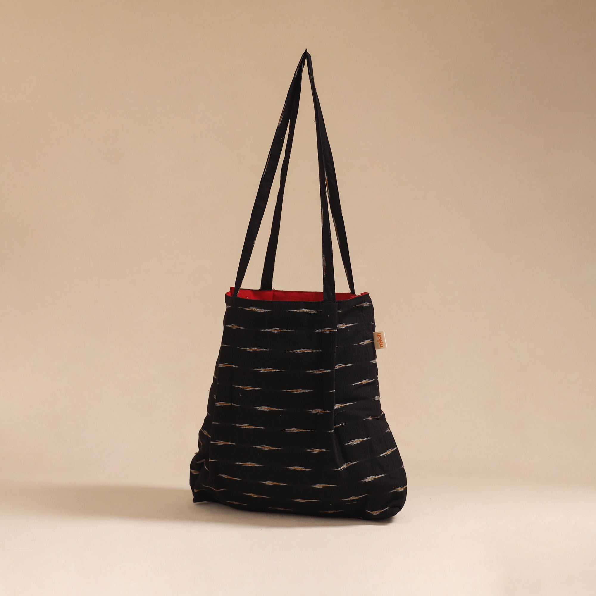 This black jhola bag adds a touch of tradition to your everyday look. Made from cotton using authentic Indian textiles, it’s lightweight and easy to carry. The spacious interior with an inner pocket keeps your essentials neatly organized, making it perfect for daily use, shopping.