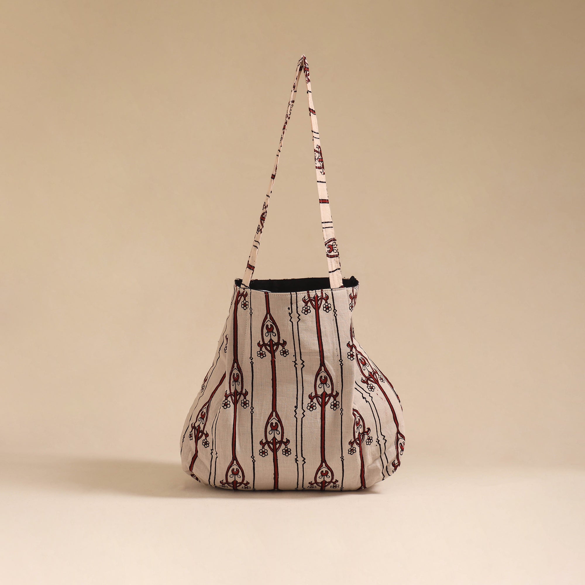 This beige jhola bag adds a touch of tradition to your everyday look. Made from cotton using authentic Indian textiles, it’s lightweight and easy to carry. The spacious interior with an inner pocket keeps your essentials neatly organized, making it perfect for daily use, shopping.