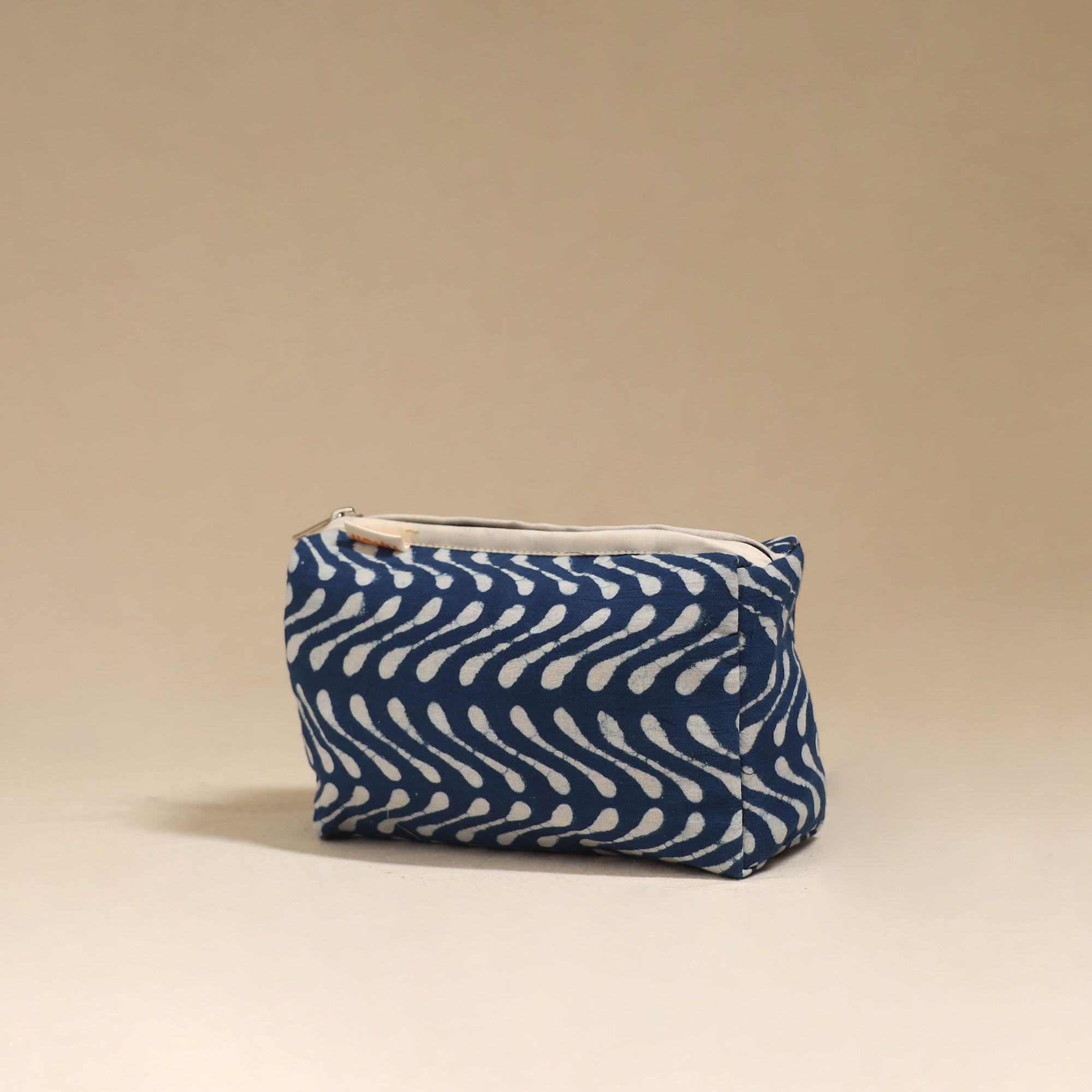 Handcrafted fabric toiletry pouch designed with beautiful detailing. Made from cotton with a waterproof lining, it helps keep essentials neatly organised while protecting them from spills. Easy to place inside larger bags or use on its own, this pouch is ideal for travel, daily storage or keeping toiletries organised at home.