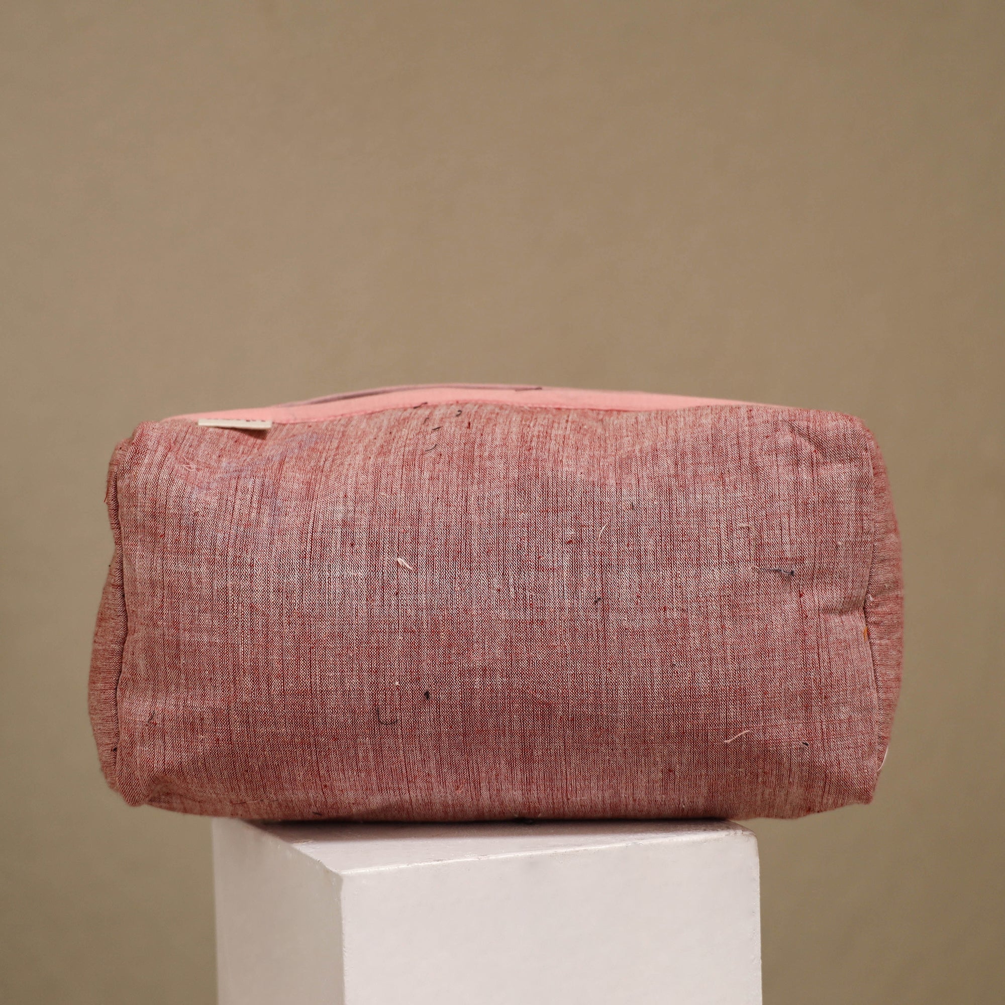 Pink handcrafted fabric toiletry bags designed with beautiful detailing. Made from cotton with a waterproof lining, The set includes three sizes for streamlined organisation of essentials, making it ideal for travel or vanity storage. Place it within larger carryalls, or coordinate it with cotton pouches and soft bath linens for a consistent, functional setup, whether stored in a dressing cabinet or carried on weekend getaways.