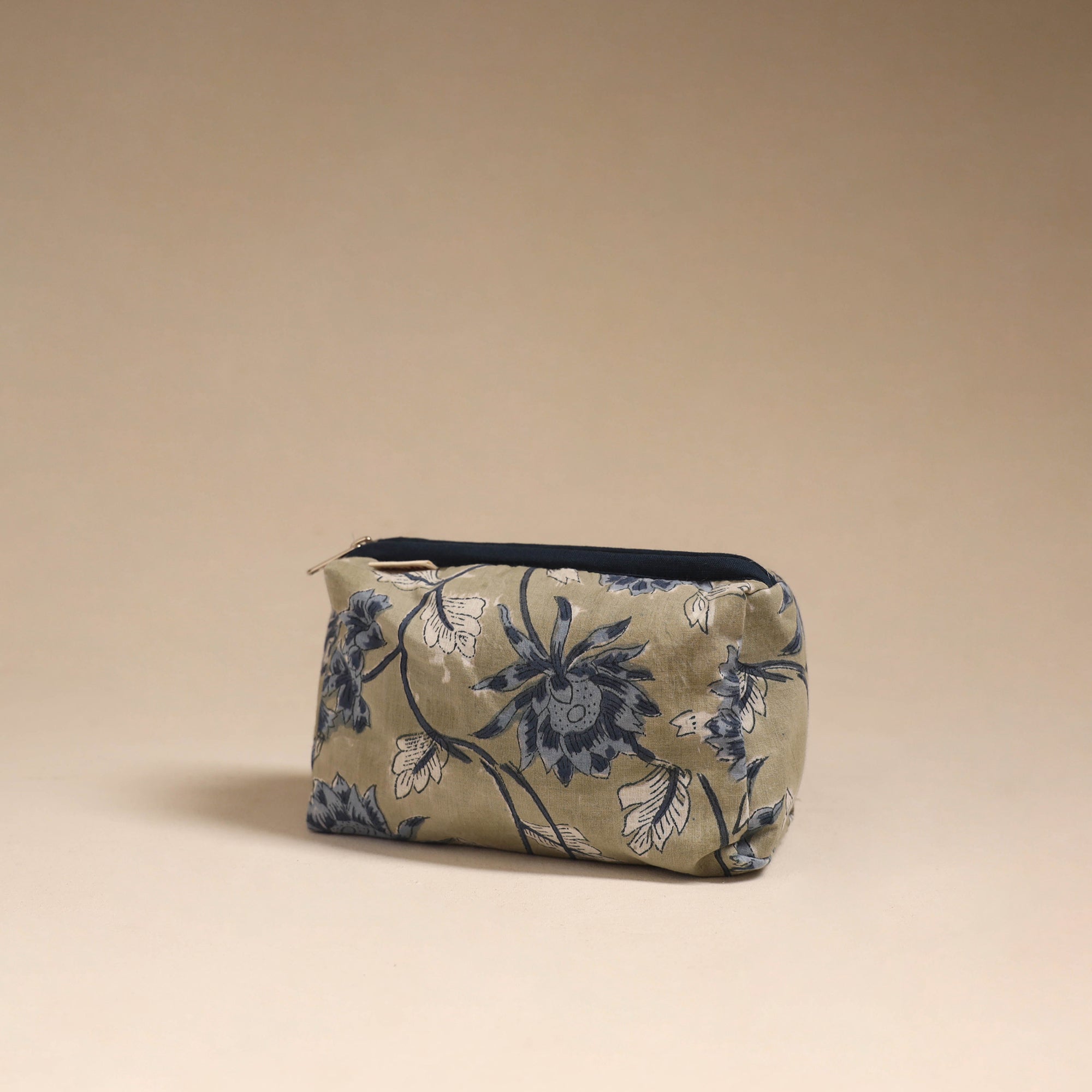Handcrafted brown fabric toiletry pouch designed with beautiful detailing. Made from cotton with a waterproof lining, it helps keep essentials neatly organised while protecting them from spills. Easy to place inside larger bags or use on its own, this pouch is ideal for travel, daily storage or keeping toiletries organised at home.