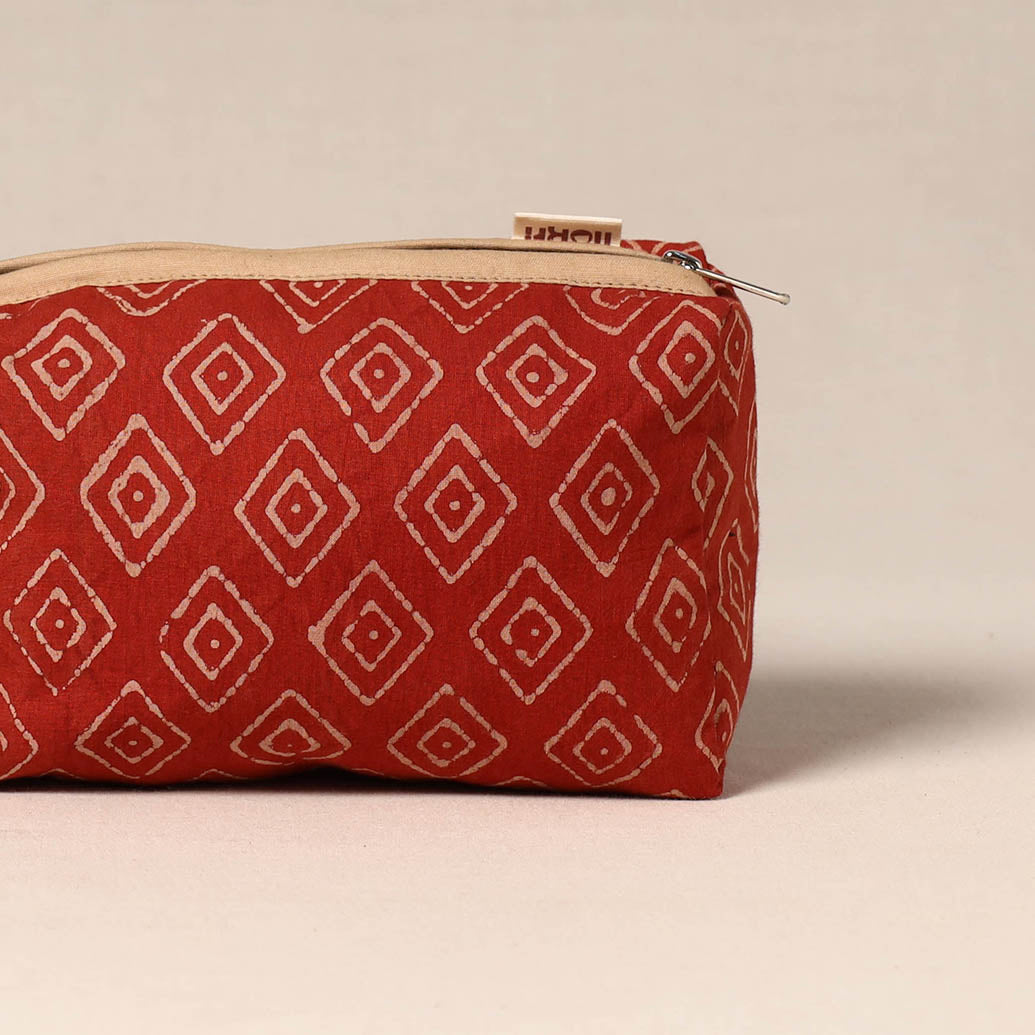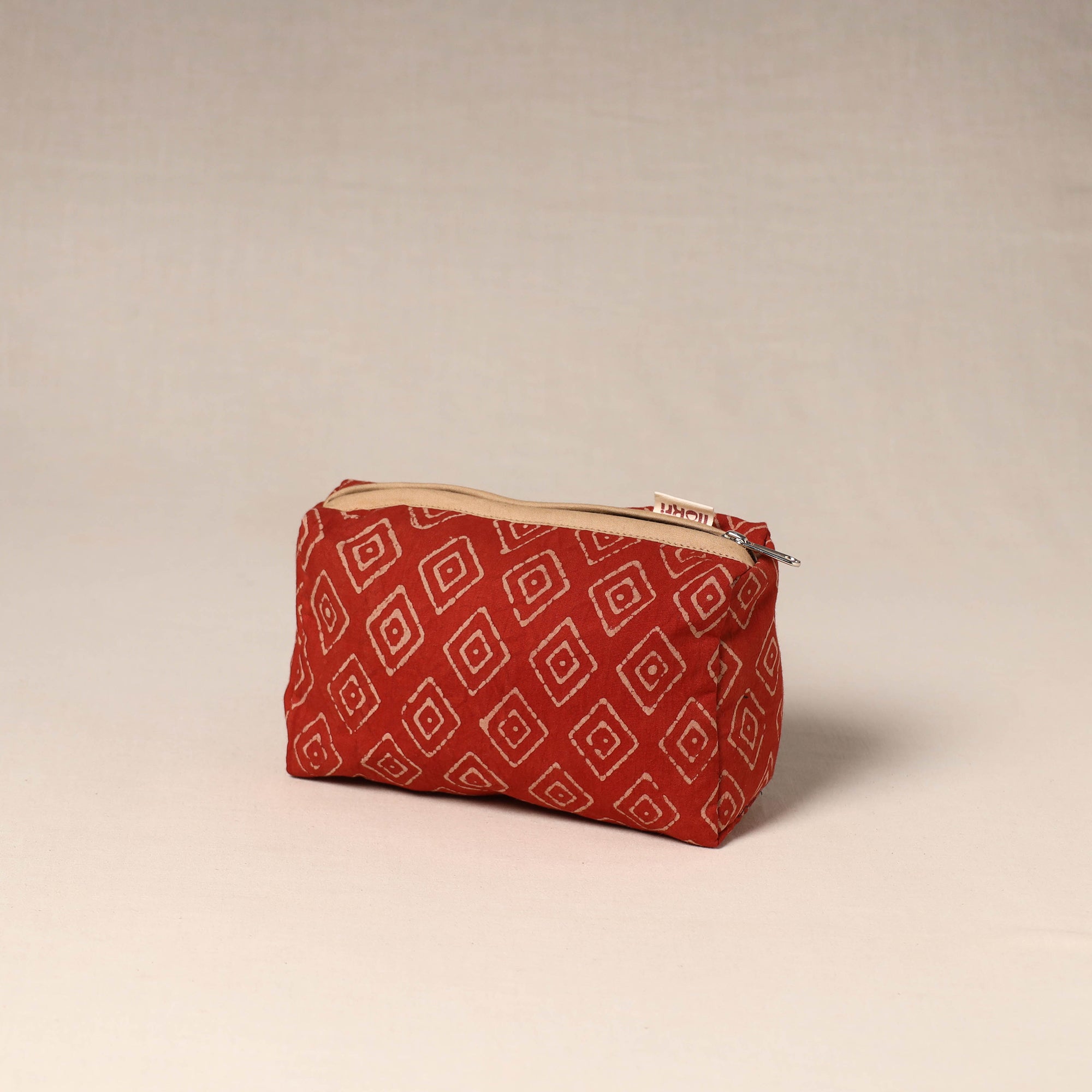 Handcrafted fabric toiletry pouch designed with beautiful detailing. Made from cotton with a waterproof lining, it helps keep essentials neatly organised while protecting them from spills. Easy to place inside larger bags or use on its own, this pouch is ideal for travel, daily storage or keeping toiletries organised at home.