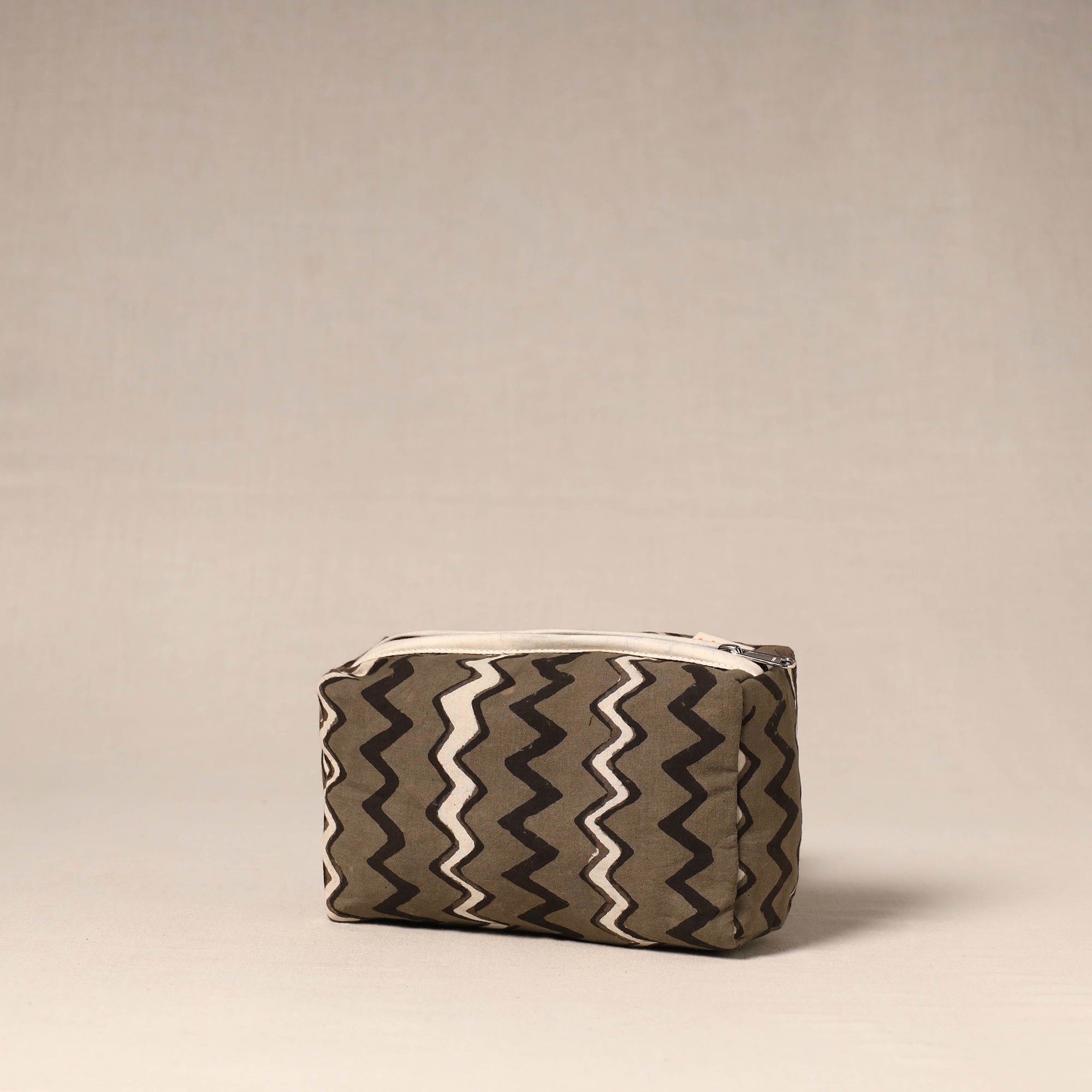 Handcrafted fabric toiletry pouch designed with beautiful detailing. Made from cotton with a waterproof lining, it helps keep essentials neatly organised while protecting them from spills. Easy to place inside larger bags or use on its own, this pouch is ideal for travel, daily storage or keeping toiletries organised at home.