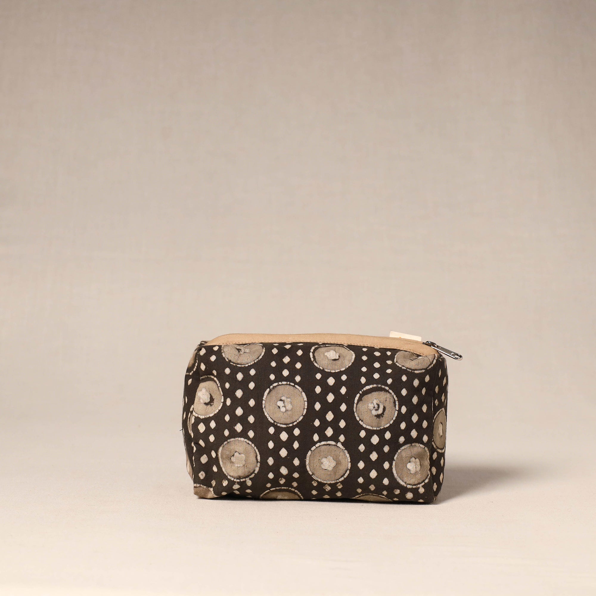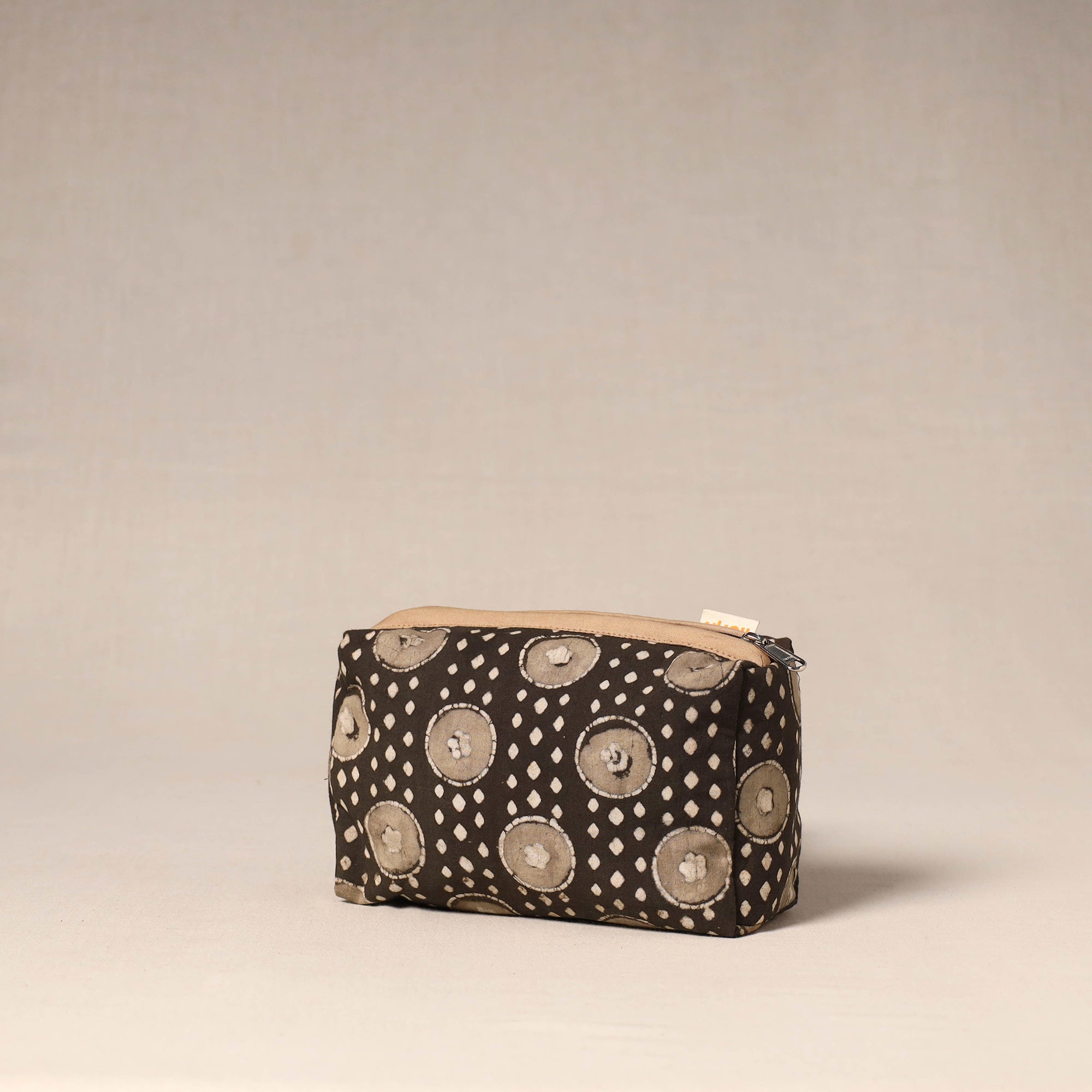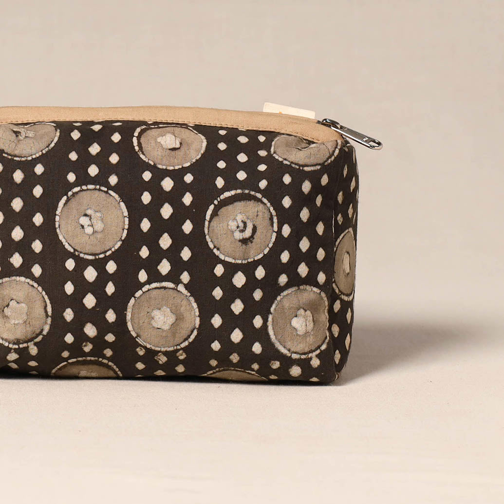 Handcrafted fabric toiletry pouch designed with beautiful detailing. Made from cotton with a waterproof lining, it helps keep essentials neatly organised while protecting them from spills. Easy to place inside larger bags or use on its own, this pouch is ideal for travel, daily storage or keeping toiletries organised at home.