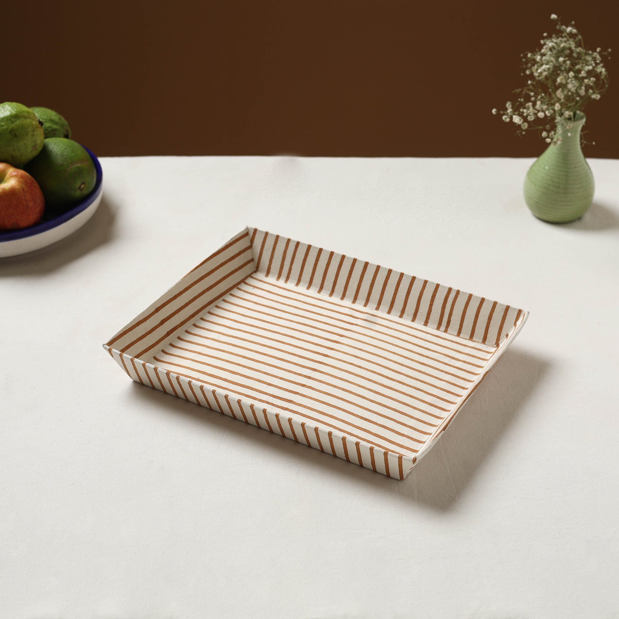 This handcrafted white valet tray has cotton fabric on top and strong cardboard inside. It’s perfect for keeping keys, coins, jewelry, or small desk items in one place. You can also use it for decoration. Its lovely print adds a nice touch to your table, bedside, or entryway.