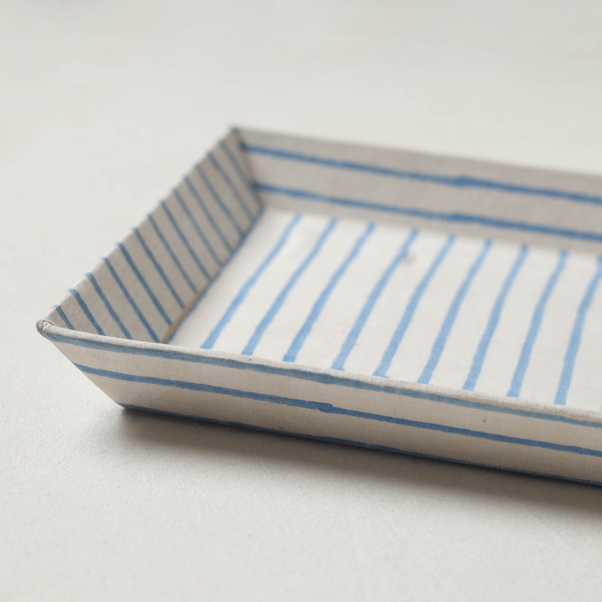 This handcrafted white valet tray has cotton fabric on top and strong cardboard inside. It’s perfect for keeping keys, coins, jewelry, or small desk items in one place. You can also use it for decoration. Its lovely print adds a nice touch to your table, bedside, or entryway.