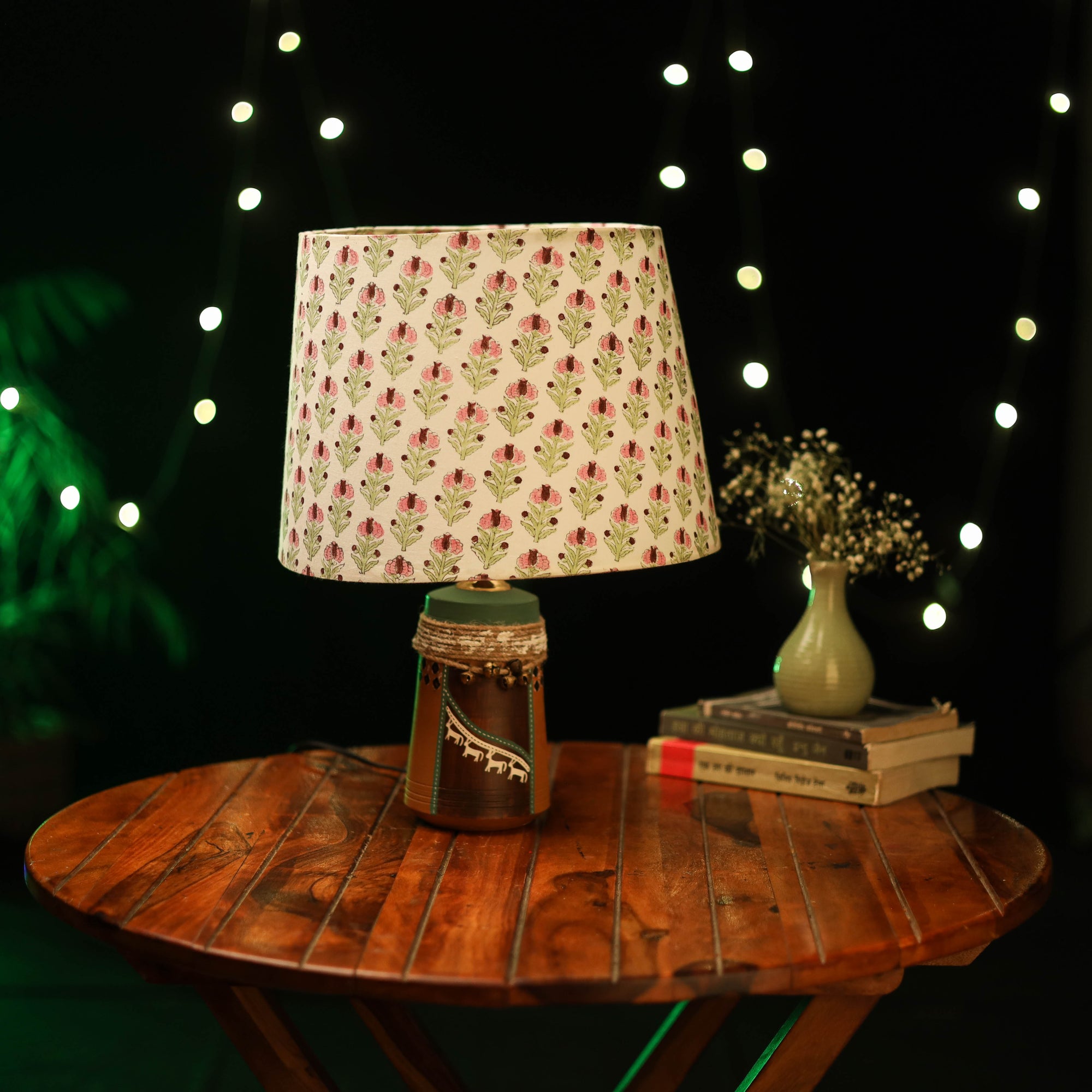 Beautiful lamp shade is made with beige floral block print cotton fabric that adds a warm, elegant touch to any space. The inside has a safe electric lining for durability and smooth light glow, while the sturdy metal frame keeps its shape perfectly. Ideal for table lamps or hanging lights, it blends traditional craft with modern style to brighten up your home decor beautifully.
