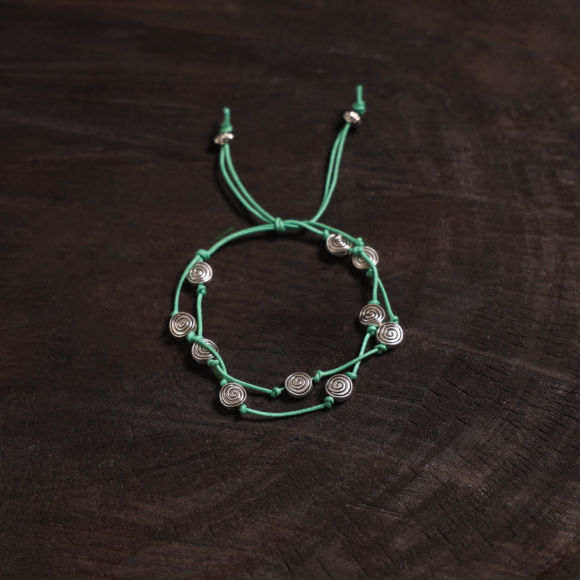 This green bracelet is made from german silver, known for its durability and silvery finish. It pairs easily with everyday outfits or festive wear, making it a versatile accessory and a thoughtful gifting option.