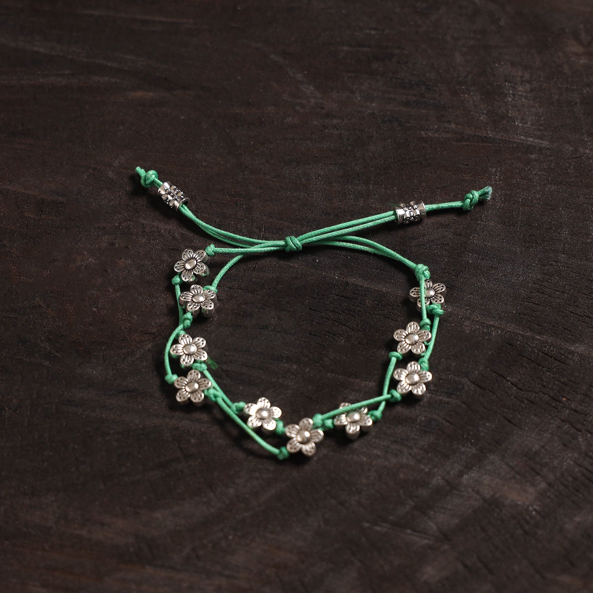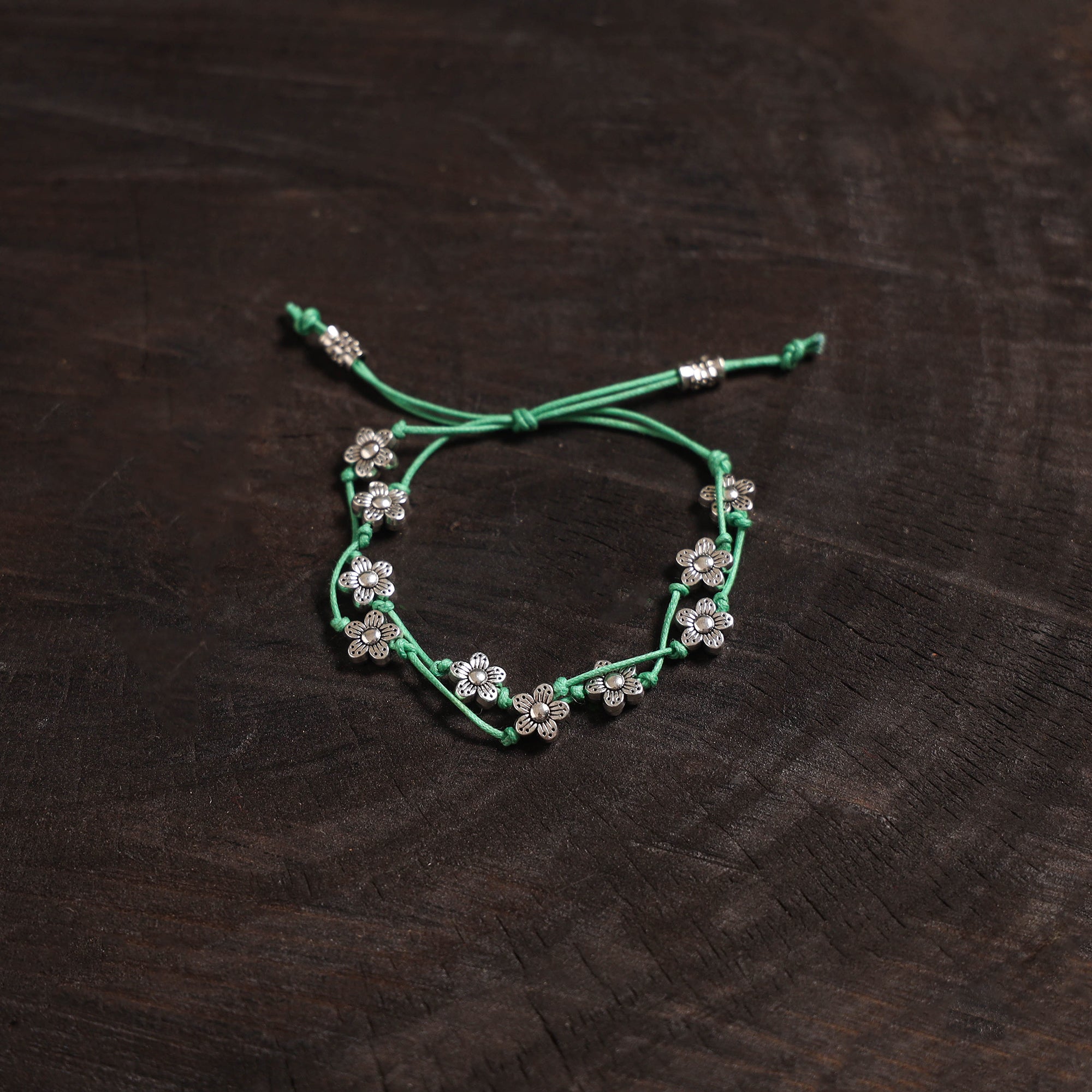 This green bracelet is made from german silver, known for its durability and silvery finish. It pairs easily with everyday outfits or festive wear, making it a versatile accessory and a thoughtful gifting option.